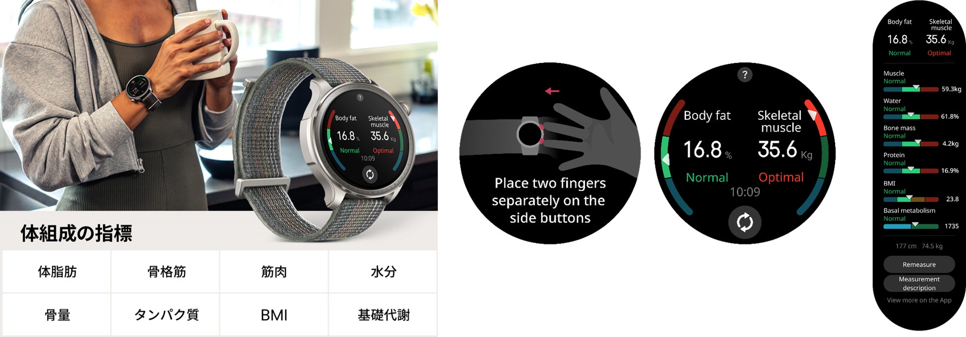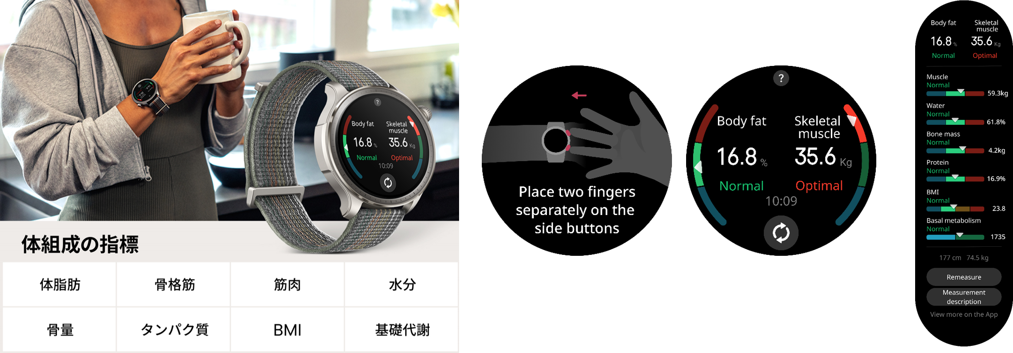 体脂肪率、筋肉量、基礎代謝などをわずか10秒で測定できるこの新機能は、自分の体をより詳細に把握するのに役立ち、食事計画や運動習慣などを調整する際に考慮することができるようになります。