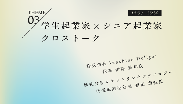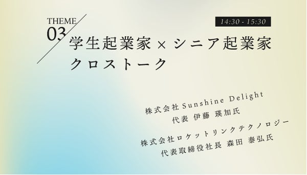 ◆トークイベント③ 「学生起業家×シニア起業家 ~チャレンジは何歳からでも出来る!~」概要