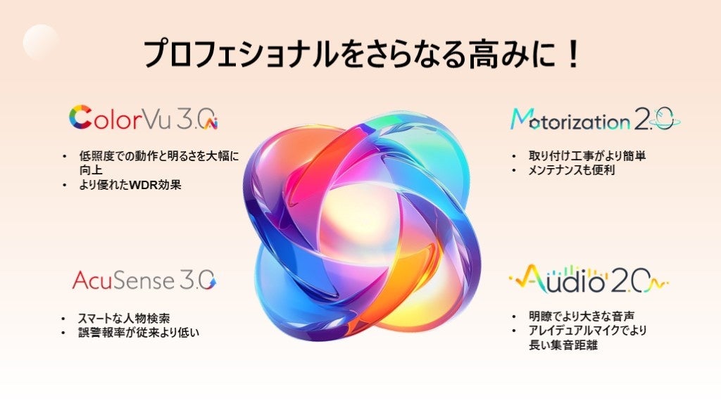Hikvisionは、より安全でスマートな未来のための技術革新に取り組んでいます。今年、Hikvisionは4つの最先端技術、ColorVu 3.0、AcuSense 3.0、Audio 2.0、Motorization 2.0を発表し、新しいEasyIP 4.0 Plusセキュリティカメラにシームレスに統合しました。