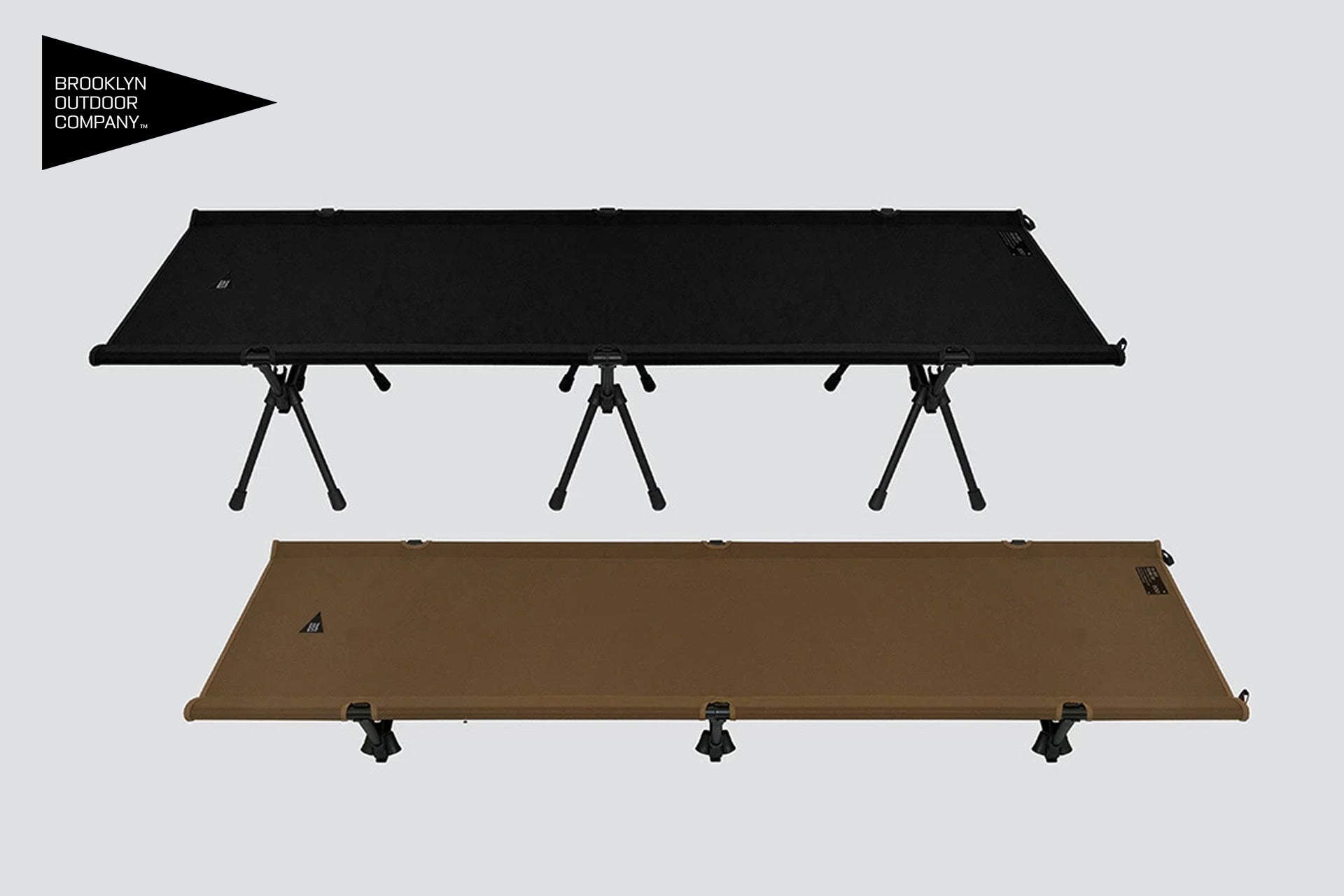 BROOKLYN OUTDOOR COMPANYならではの寝心地抜群のフォールディングコットが、新採用のブラケットで従来の高い静音性と寝心地に加え、撤収の圧倒的なスピードアップを実現しました。