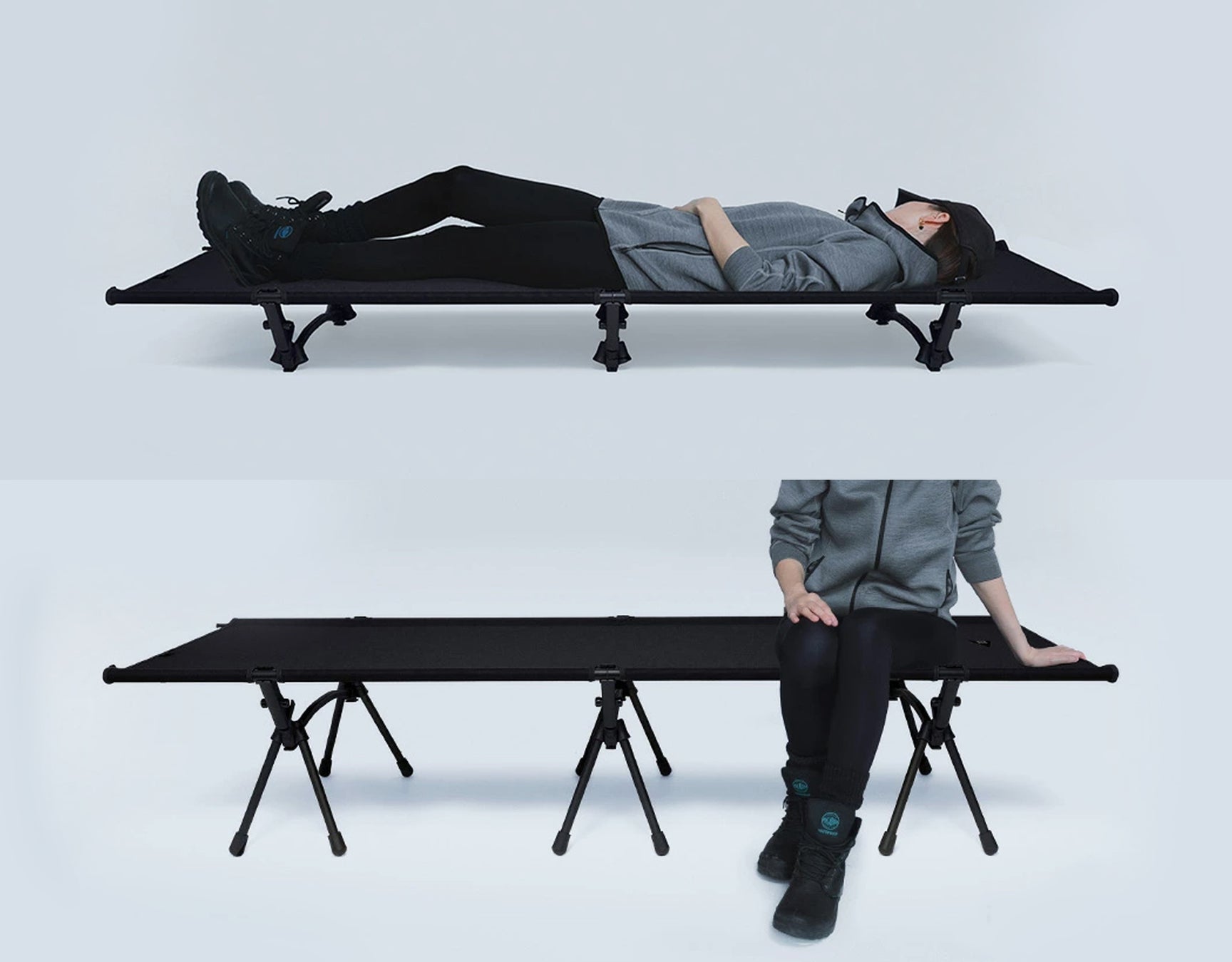付属のコットレグを使えば2WAYで17cmと37cmの高さの切り替えが出来るので、乗り降りの際の腰の負担を大幅に和らげてくれます。キャンプに限らず災害時等の長期に渡る避難生活でも一台あれば非常に安心。ベンチとして使用するにもベストな高さです。