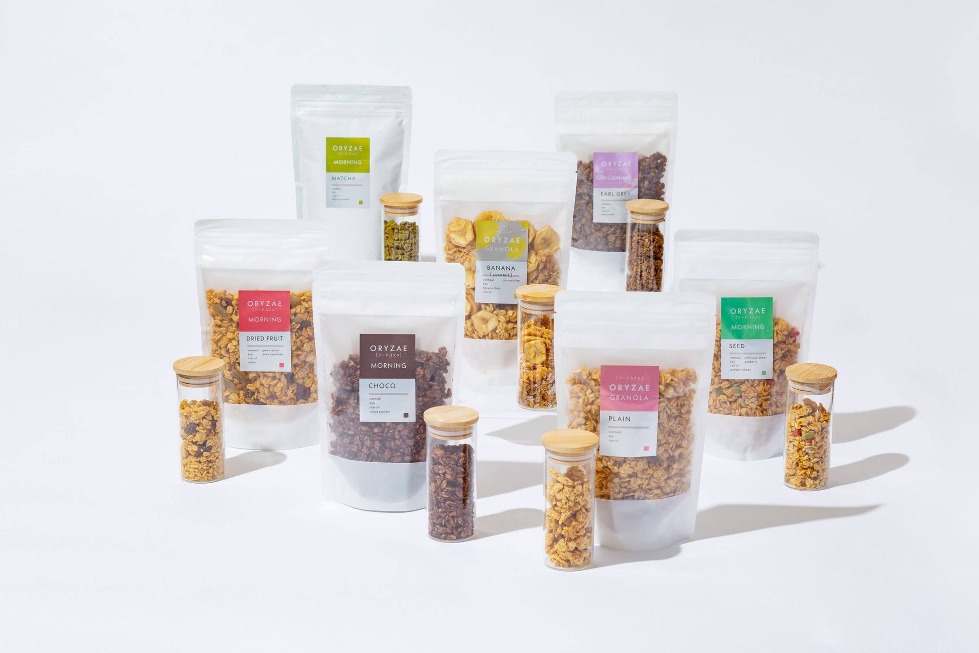 ORYZAE GRANOLAは定番の7つのフレーバーに加えて、季節に合わせた限定フレーバーを発売しています。「毎日続けて食べるものだからこそ、飽きずにおいしく食べられなければならない」という思いから、D2C主流のミニマムな商品展開からスタートする戦略とは真逆のブランド戦略を行ってきました。