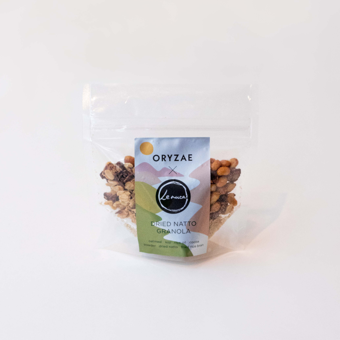 オリゼは、グラノーラをはじめとしたOEM製造を2023年よりスタートしました。米麹発酵由来糖分「オリゼ」を活用した砂糖不使用グラノーラを、生活者への新たな価値提供の手段として選んでいただいています。日本の食文化を世界に発信する「発酵フーズ」とは、納豆をどんなライフスタイルでも取り入れやすくなる「ドライ納豆グラノーラ」を開発しました。