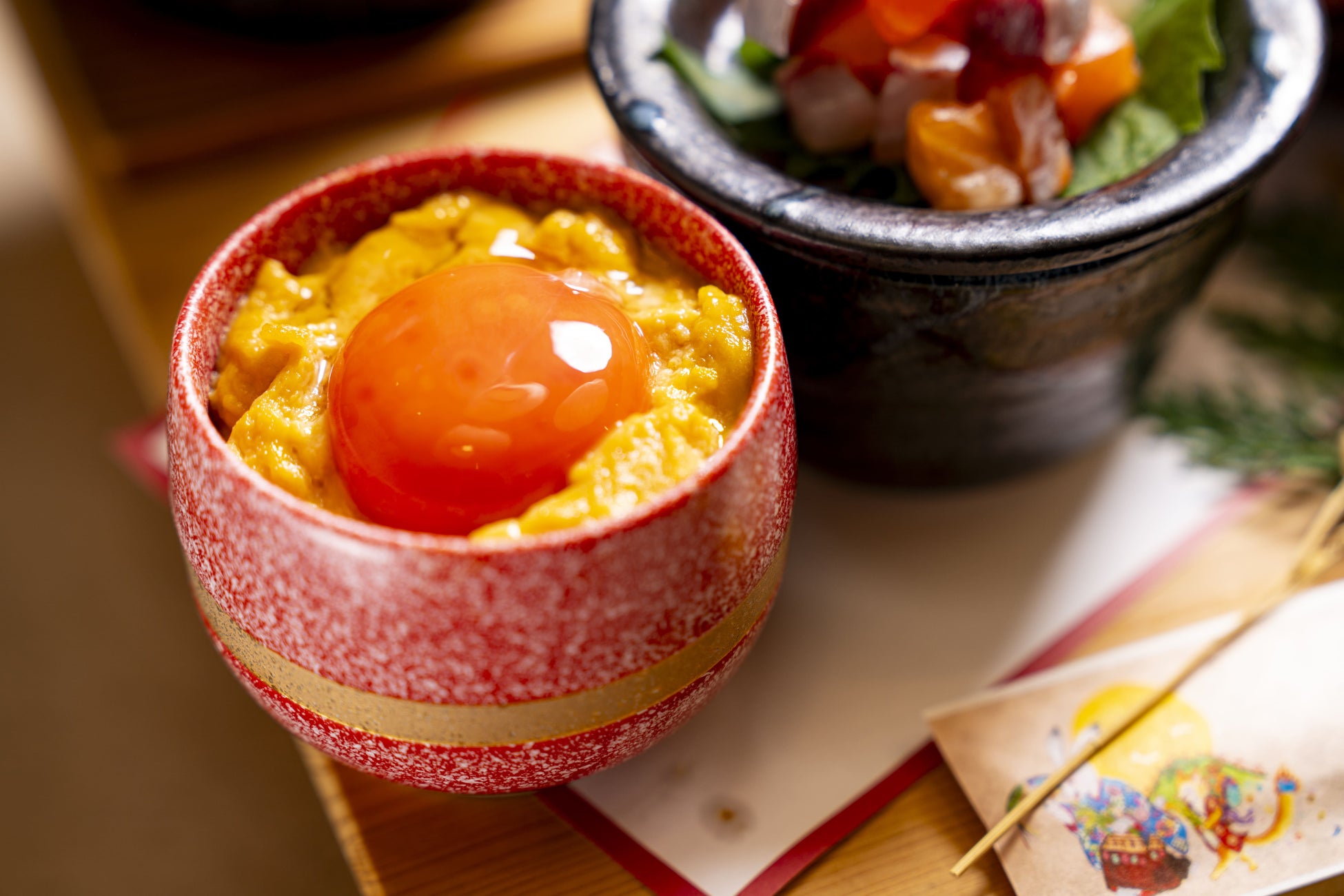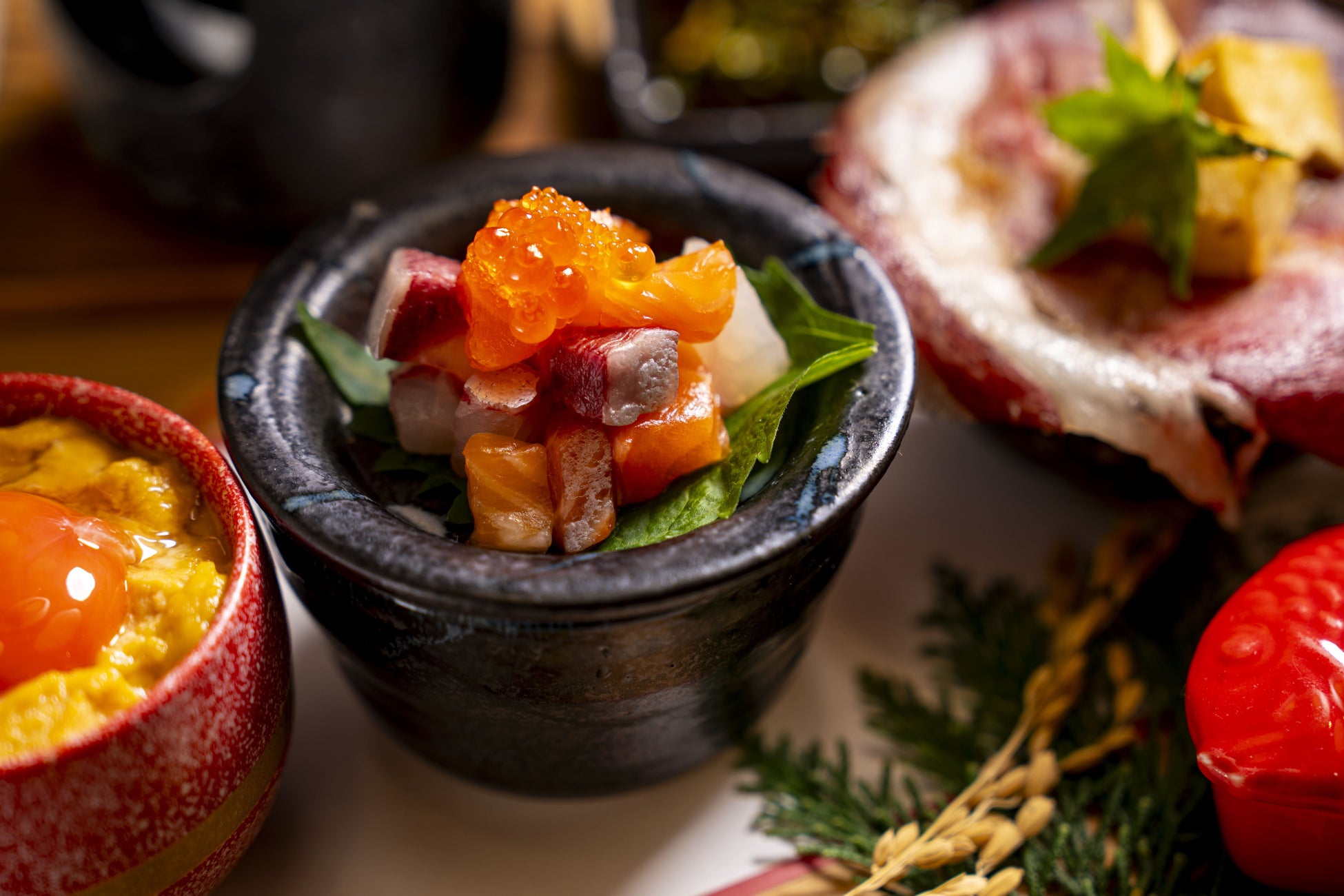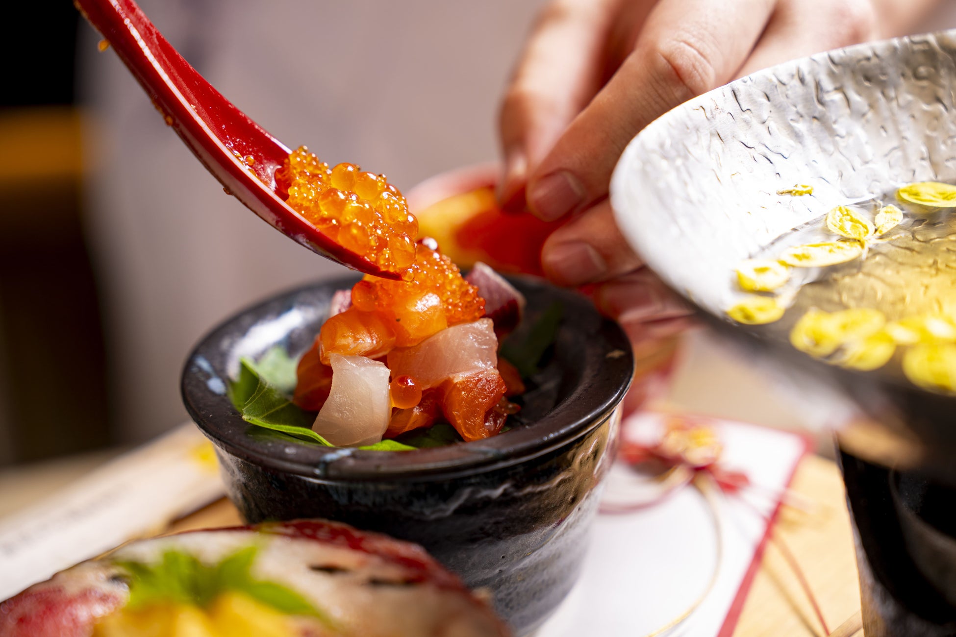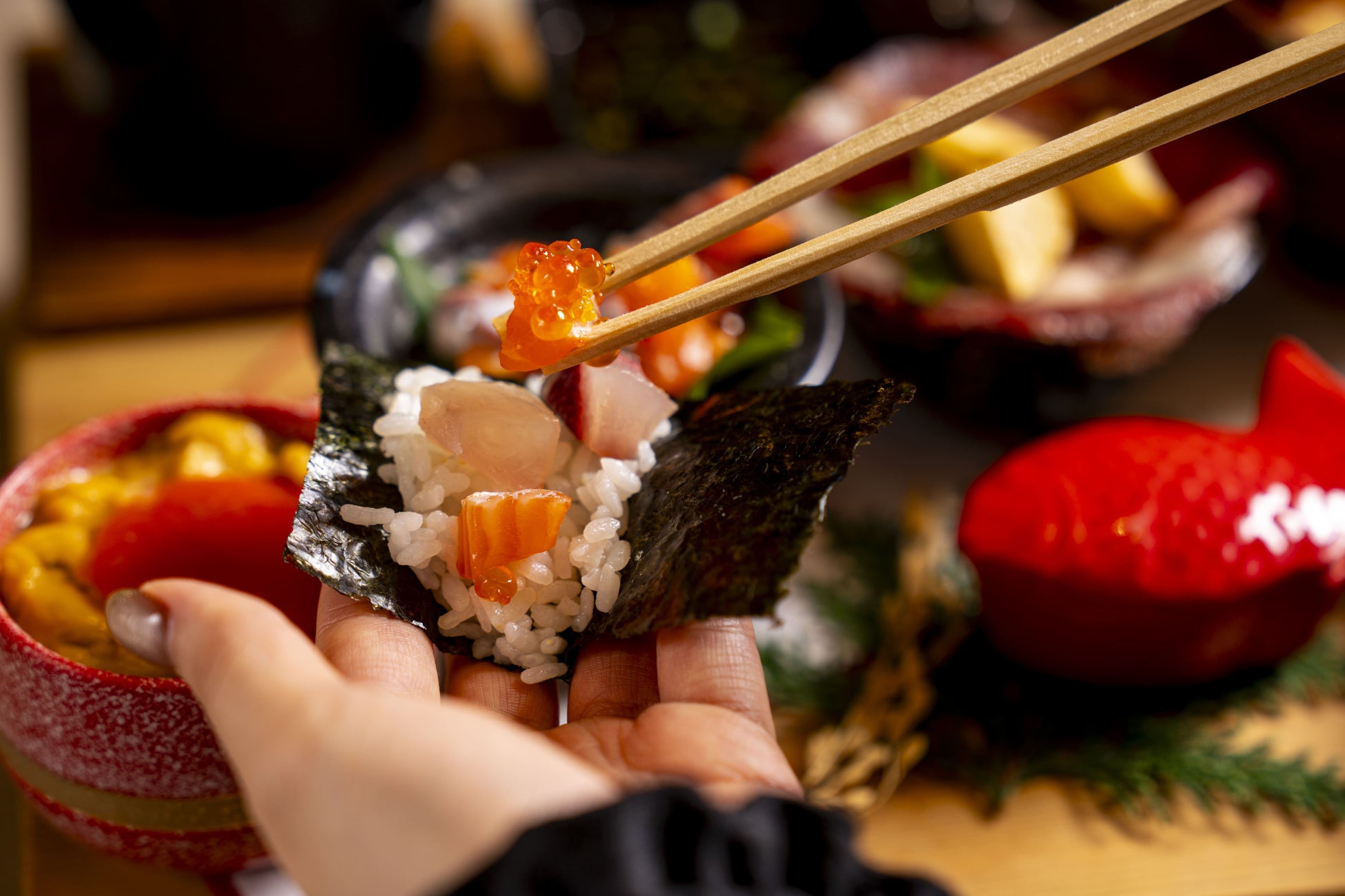 厳選した新鮮な海の幸を贅沢に使った、特製海鮮手巻き寿司。美しく色鮮やかな盛り付けは目にも楽しく、御膳を華やかに彩ります。旬の魚介を中心に、旨みたっぷりのネタを厳選し、素材の味を最大限に引き出しました。