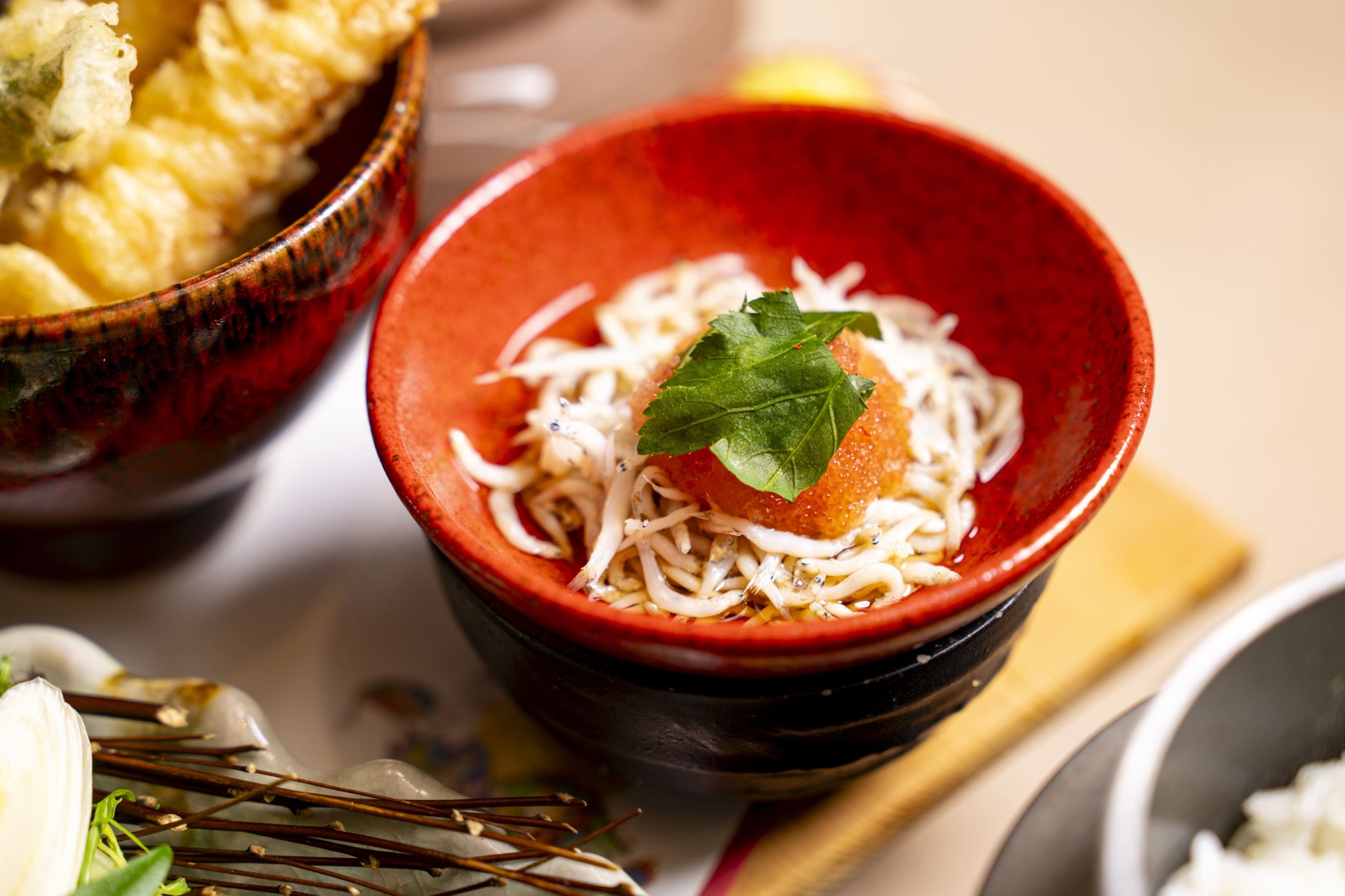 厳選された国産米をふっくらと釜で炊き上げ、相性抜群の明太子としらすをトッピングしました。