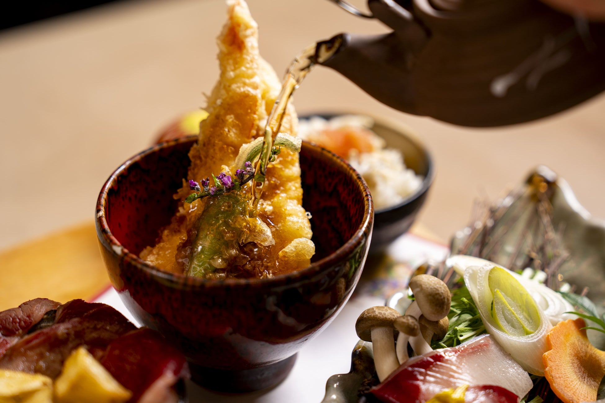 特製の出汁をかけて、天茶漬けとしてもお楽しみいただけます。