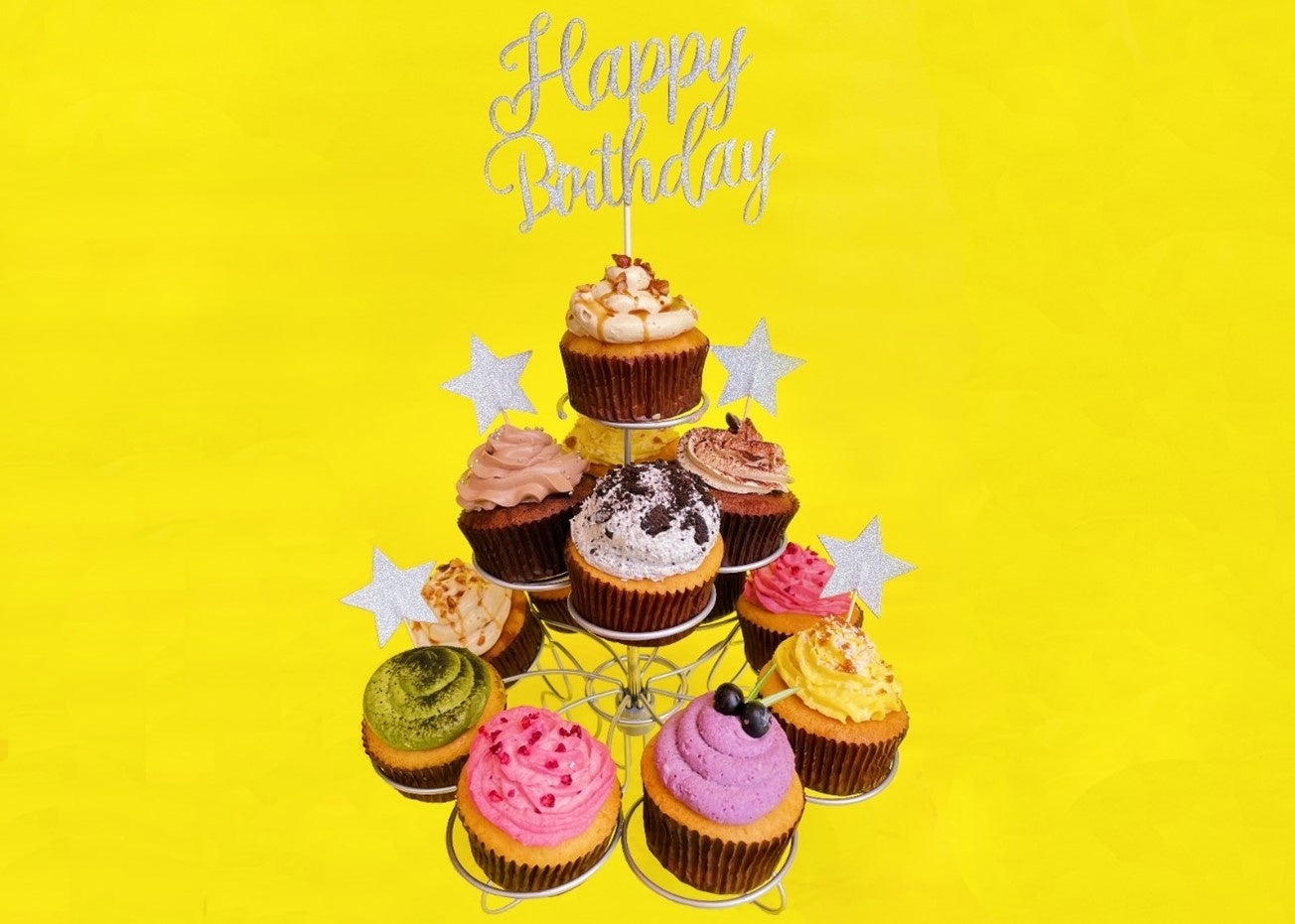 お誕生日には事前予約限定でカップケーキ12個がのったカップケーキタワーをご用意致します。