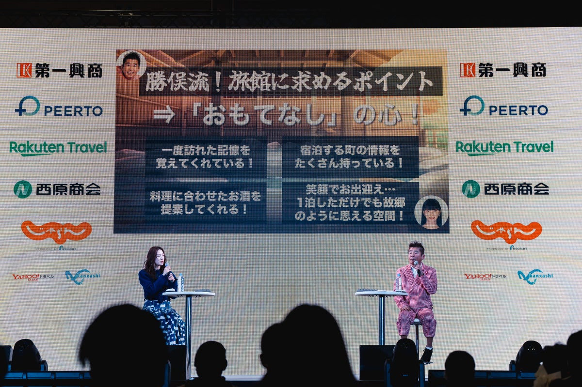 また、朝日放送テレビの人気番組「旅サラダ」とのコラボステージ では、勝俣州和さん&江田友莉亜さんが登場。 全国の隠れ宿や秘湯、絶品グルメを熱く紹介しました。
