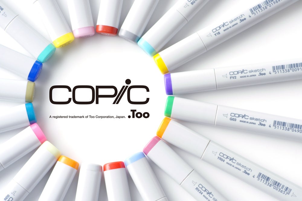 コピックはTooグループで開発したアルコールマーカーの名称であり、用紙類やエアブラシなどの製品を含むブランド名です。コピックのマーカーは358色ものラインナップを持ち、インクや本体の品質の高さや繰り返し長く使用できる点などが評価され、デザインの作画、イラストレーション、漫画の着彩、クラフトなど様々な分野で活用されています。