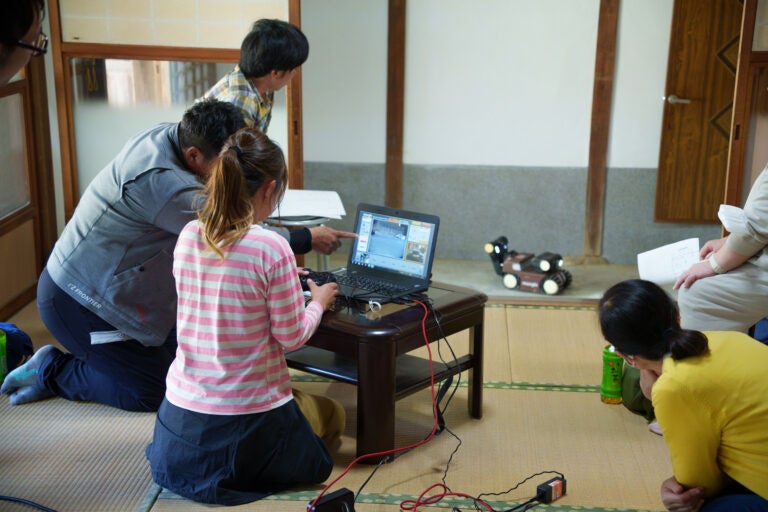 最終回は古民家の伝統工法を対象とした「伝統耐震診断」。講師から在来工法と伝統工法の違いや耐震診断方法について解説があり、会場では土間と屋根裏に地震計を設置し、古民家ならではの揺れを観測しPCで波線を確認しました。