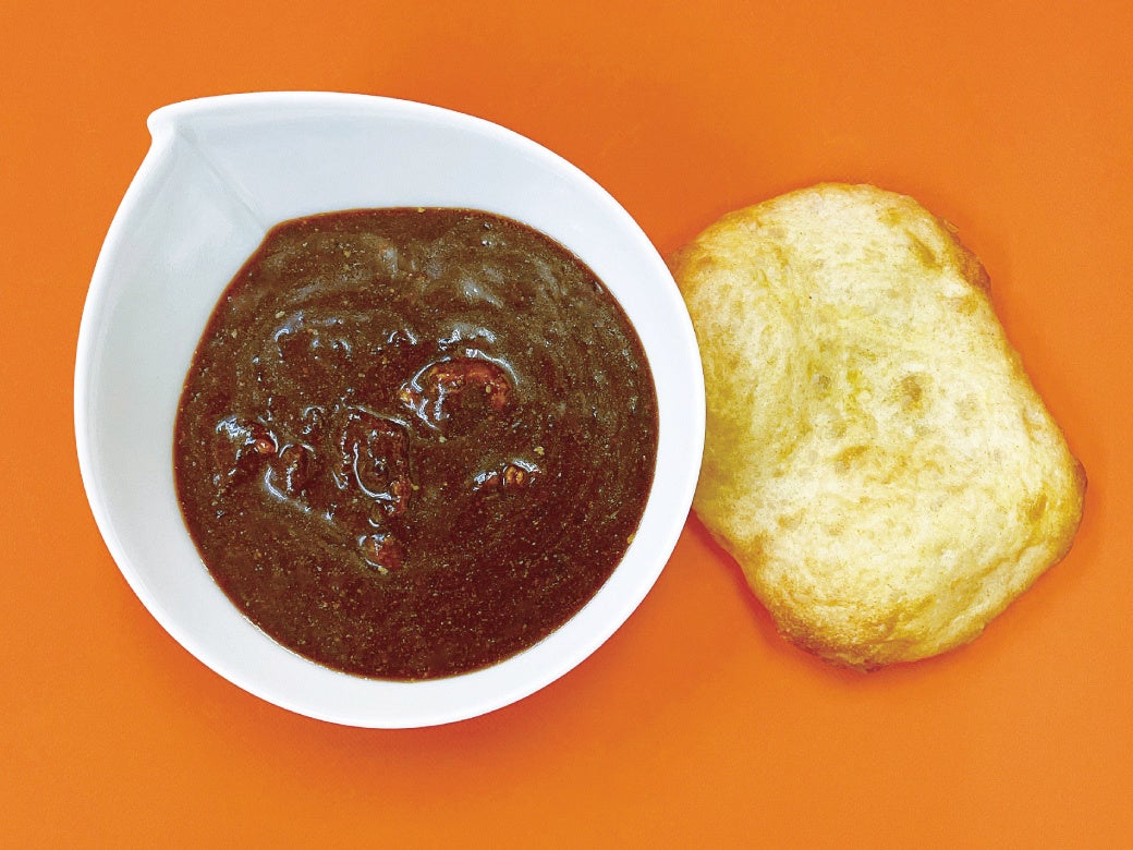 隠し味にコーヒーを使用した深い味わいのビーフカレーと、もちもち食感のロデヴのセット。