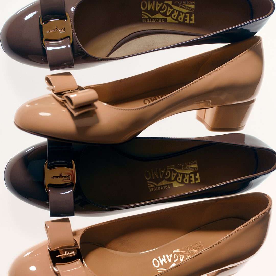 1978年、その装飾モチーフはプロトタイプのまま採用され、ロゴを刻んだメタルプレートが添えられた。偶然から生まれたグログランのリボンは、その後シューズだけでなく、ジュエリーやバッグ、ベルト、スモールレザーグッズにも登場する、フェラガモを象徴するシグネチャーとなった。