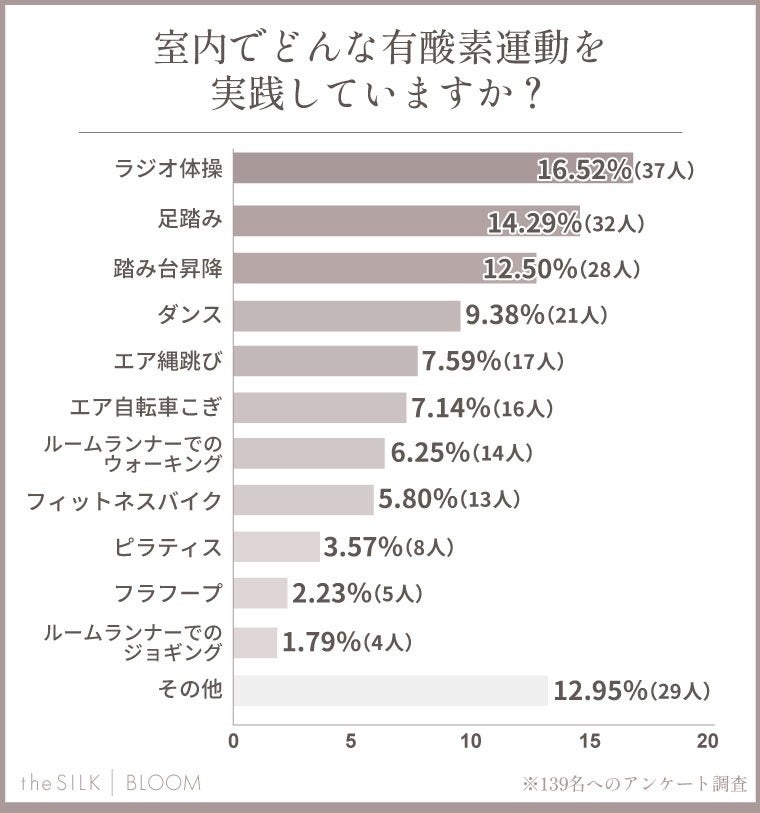 今回は、室内でできるおすすめの有酸素運動を139名に調査しました!
