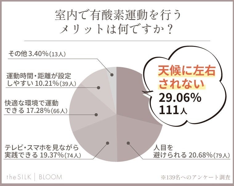そこで今回、the SILK編集部が室内での有酸素運動に効果があったかを139名にアンケート調査したところ、約8割の方が「効果があった」と回答しました。