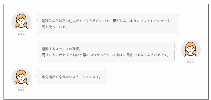 実際に「室内で簡単に実践できて効果もあるから」と継続している方が多いようです。
