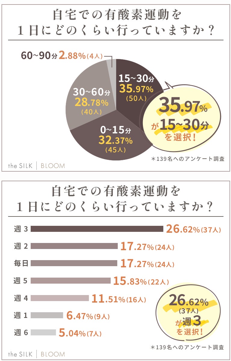 株式会社HYV(本社:東京都目黒区、代表取締役:茅野 航平)が運営する「the SILK BLOOM」では、「室内でダイエットできる有酸素運動」に関するアンケート調査を実施いたしました。