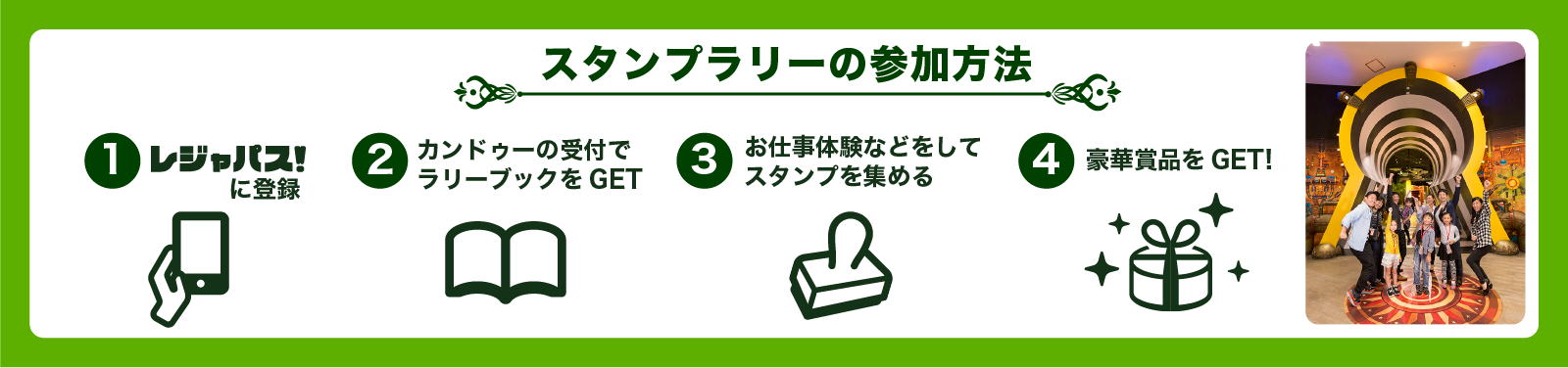 カンドゥーは親御さまもお客さま役ができるので、大人も置き去りにならずに楽しめます。お子さまの成長や意外な一面が発見できるはずです。レジャパスで気軽にカンドゥーに遊びにきてください!親子で過ごせる時間は意外と短いので、是非この機会に家族みんなで想い出を作って笑顔になっていただきたいです。