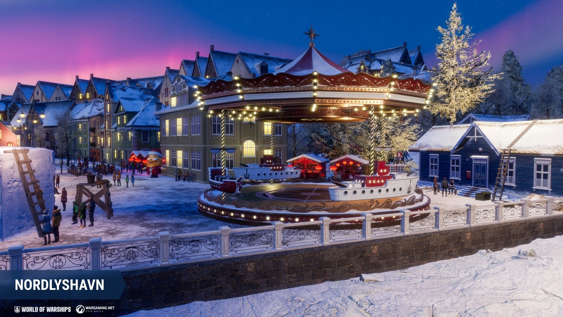 「北極圏の驚異」イベントでは、バトルで獲得したオーナメントで飾れるお祝いのツリーが置かれたノルディスハーフン港が登場します。ツリーの装飾が華やかになると、コンテナやWorld of Warshipsプレミアムアカウント1日分など、さまざまな無料アイテムがアンロックされていきます。ユニークなオーナメントすべてを揃えられたプレイヤーは無期限迷彩「冬の海辺」、「石炭重視」コンテナ 3個、「暖炉のそばで」旗を受け取ることができます。さらに12月中は、日替わりで様々なプレゼントが受け取ることができる、ゲーム内アドベントカレンダーも復活いたします。