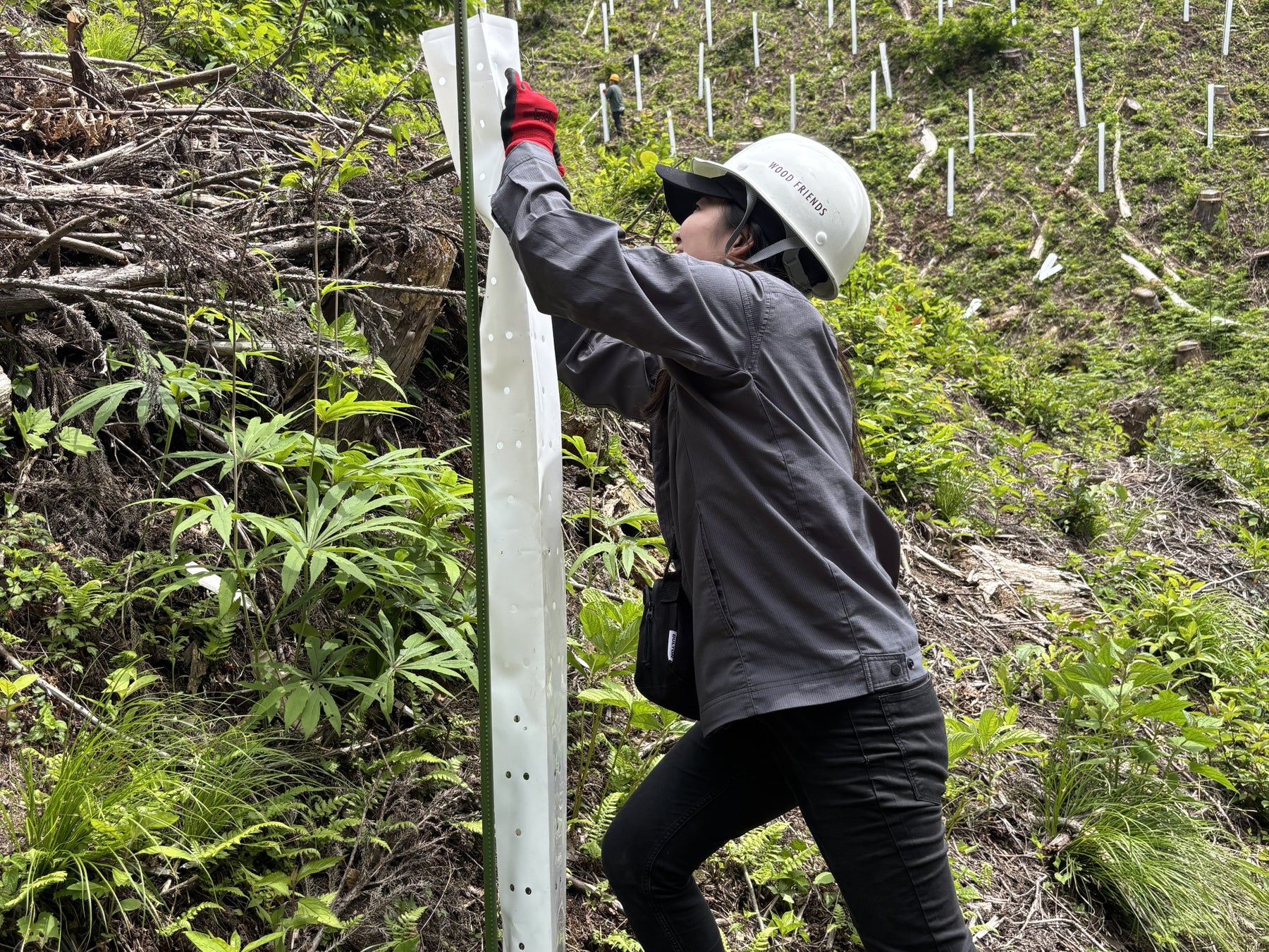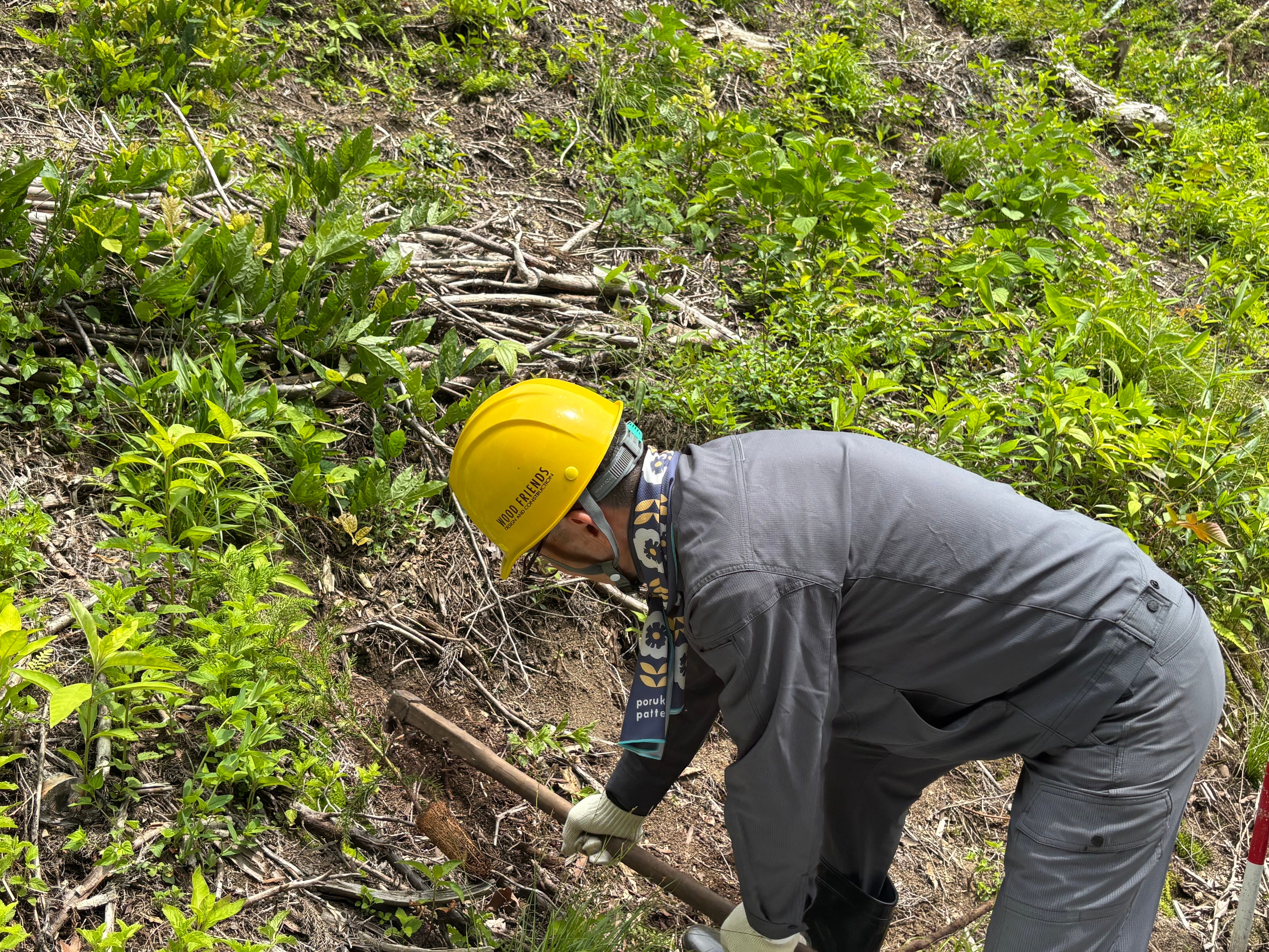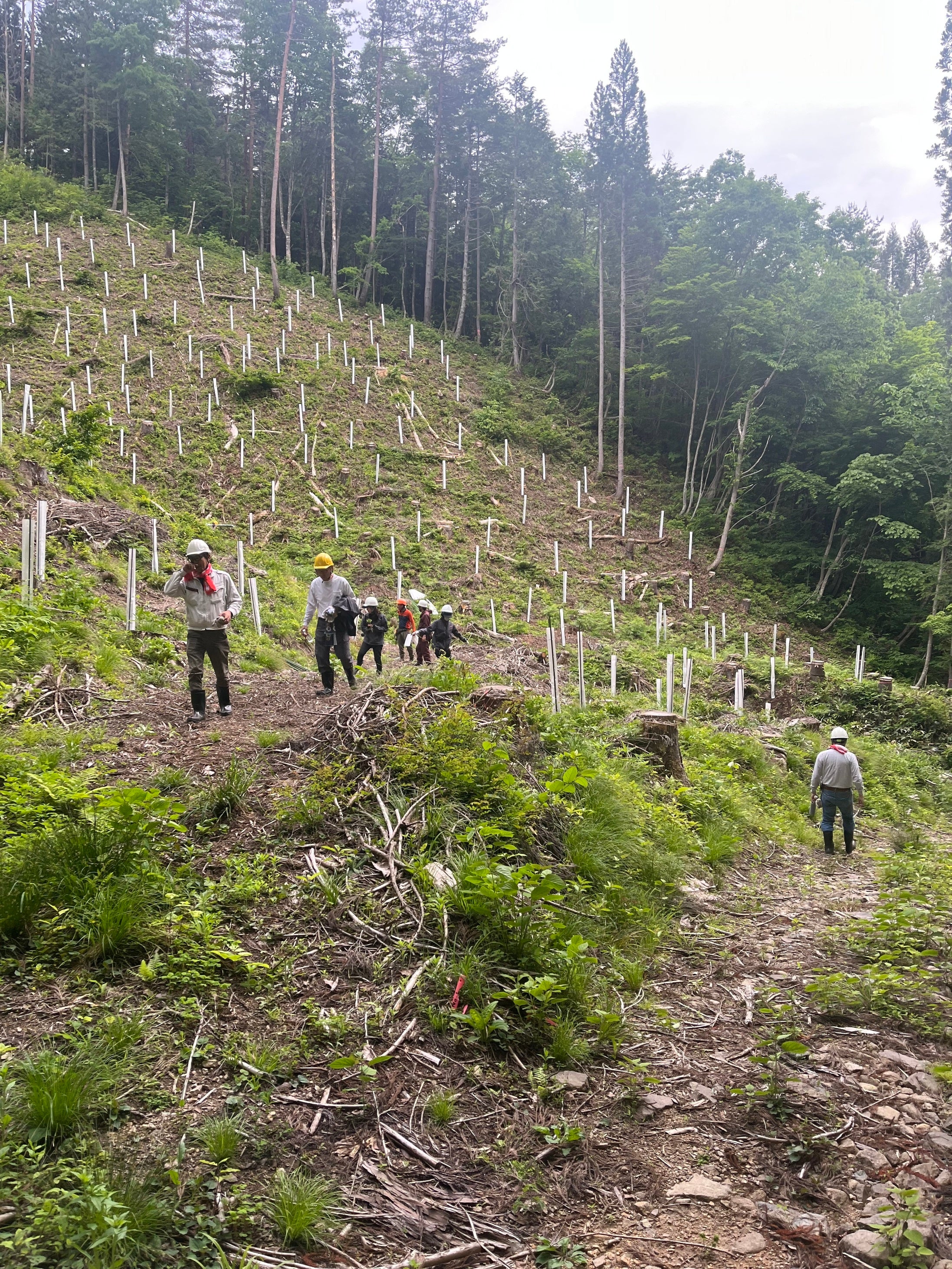 自らクワを使って山の斜面を掘り、まだ細い苗木を植え付ける体験は、自然との向きあいや何十年先に成長する森へと思いを馳せるきっかけとなりました。また、林業に携わる方々との交流により、都市生活における森林資源の保全や林業の大切さをあらためて実感しました。
