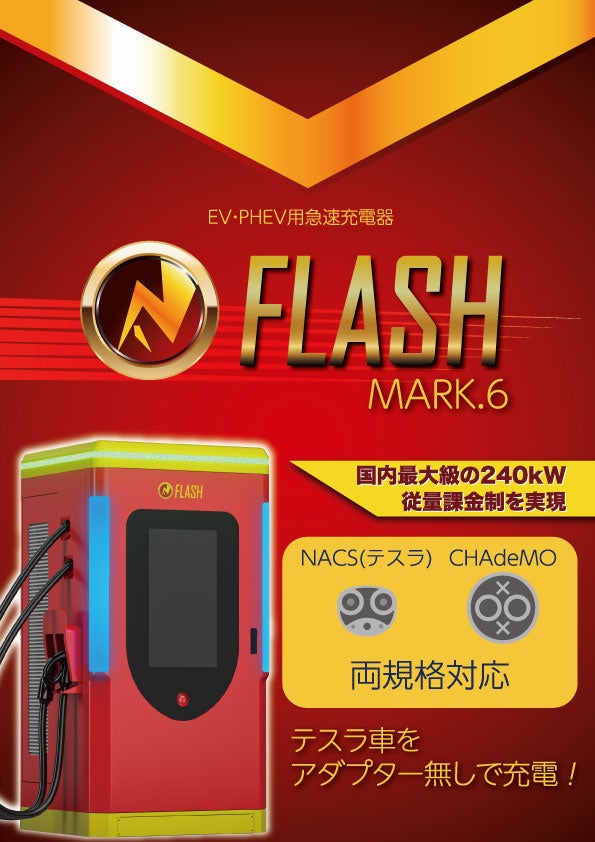 出力240kWのEV超急速充電器がさらに進化!大型液晶ディスプレイを搭載した「FLASH MARK.6」登場!既存のFLASHからバージョンアップも可能