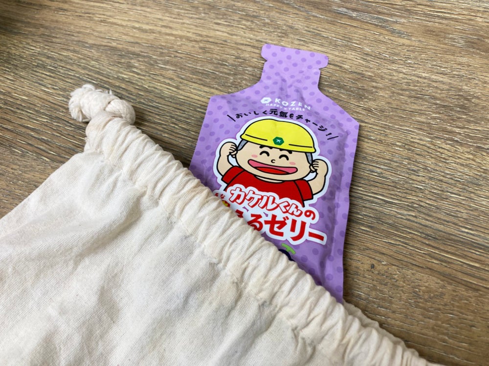 「カケルくんの備えるゼリー」はぶどう味の、柔らかくつるんとした食感のゼリー。パッケージを押し出して食べるスタイルで、手軽に楽しめます。