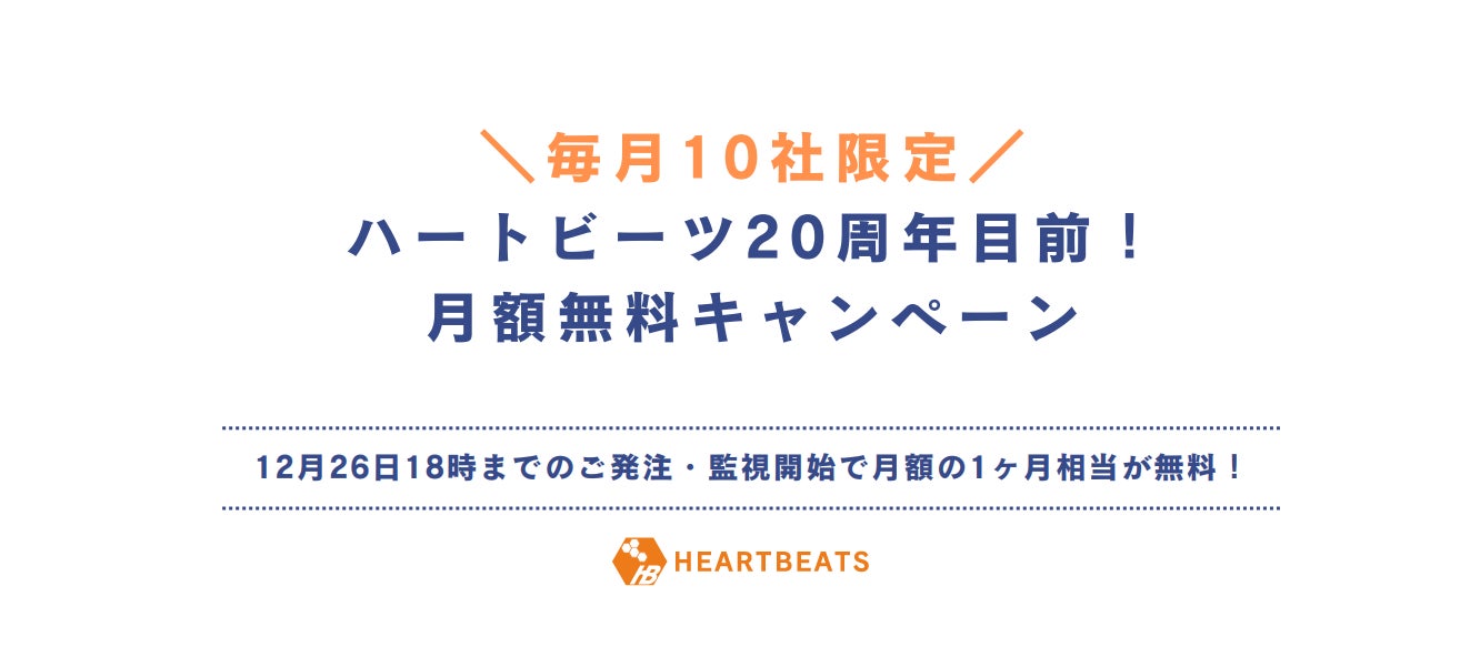 【12月26日まで】\毎月10社限定/ハートビーツ20周年目前!月額無料キャンペーン