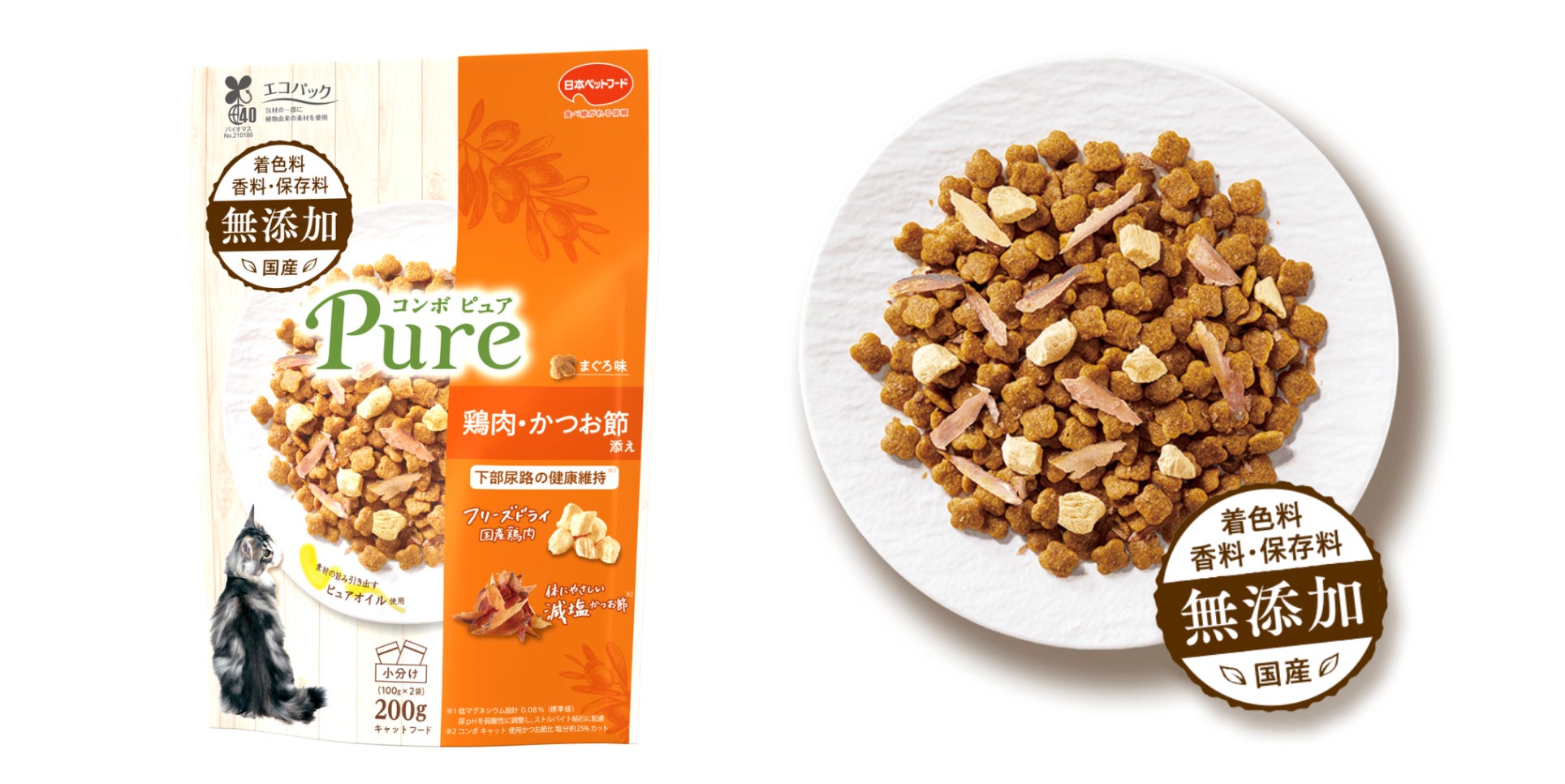 「大切な家族が食べるごはんだから、カラダにやさしくておいしいものを。」そんなオーナーさんの想いをカタチにしたのが、「コンボ ピュア キャット」。気になる添加物は使わずに、ねこちゃんが喜ぶおいしさはたっぷりと。本物素材の旨みを最大限に引き出した独自の製法で、混じりっけなしのピュアなおいしさをお届けします。