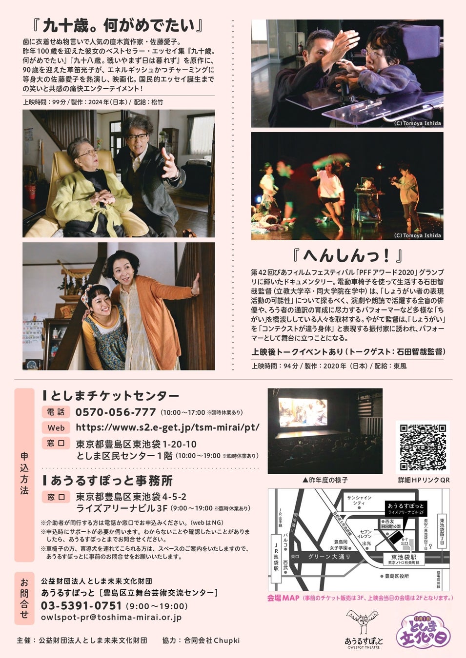 公益財団法人としま未来文化財団(所在地:東京都豊島区、理事長:合場直人)は、あうるすぽっと[豊島区立舞台芸術交流センター]にて、目や耳に障がいのある方も含め、誰もが映画を鑑賞できる「バリアフリー上映会」を開催いたします。