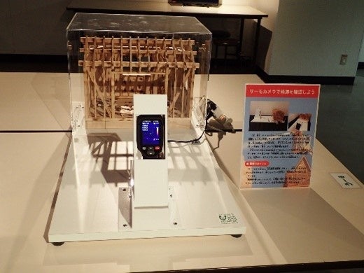 近年ではこの残火処理の補助ツールとしてサーモカメラも活用されています。この展示では、展示模型に隠されたヒーターを火種と仮定して、実際のサーモカメラでどのように見えるか体験します。