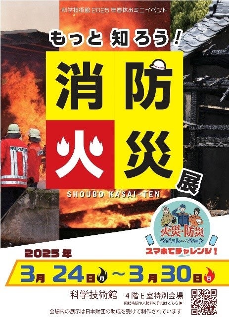 科学技術館は、日常的に発生している火災について、火災とはどのような現象であるのか科学的な視点で再確認し、消防の現場で取り入れられている新しい技術を紹介することで、火災が発生した際の正しい行動や対処法が学べる「火災」、「消防」をテーマとした企画展を開催します。