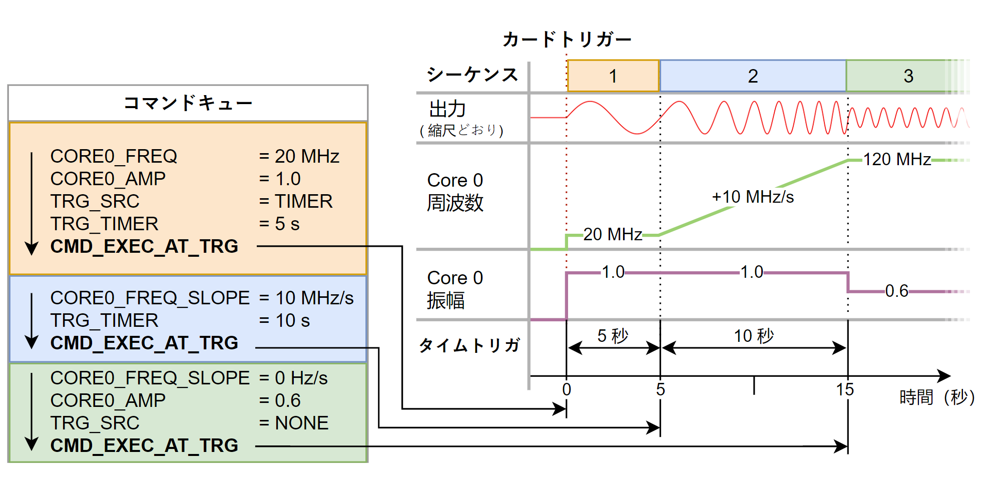 「DDSアップグレードの大きな利点は、その効率性にあります。大容量の波形データをストリーミングする代わりに、ユーザーは装置内メモリに格納されたコンパクトなコマンドシーケンスによって信号特性を制御できます。数百万のコマンドは最小3.2 nsecの高精度タイミング分解能で保存・実行され、ジッタやグリッチのない動作を実現します。設定は外部トリガ、内部タイマー、またはコマンドによって実行でき、複雑なパルス列、周波数スイープ、AM/FM変調、独自形状のトランジションなどの生成が容易になります。」