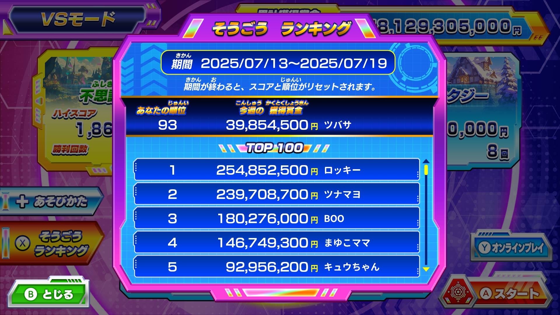 「ハンターVS逃走者モード」では、オフラインとオンラインで獲得した賞金の累計で順位を決定。