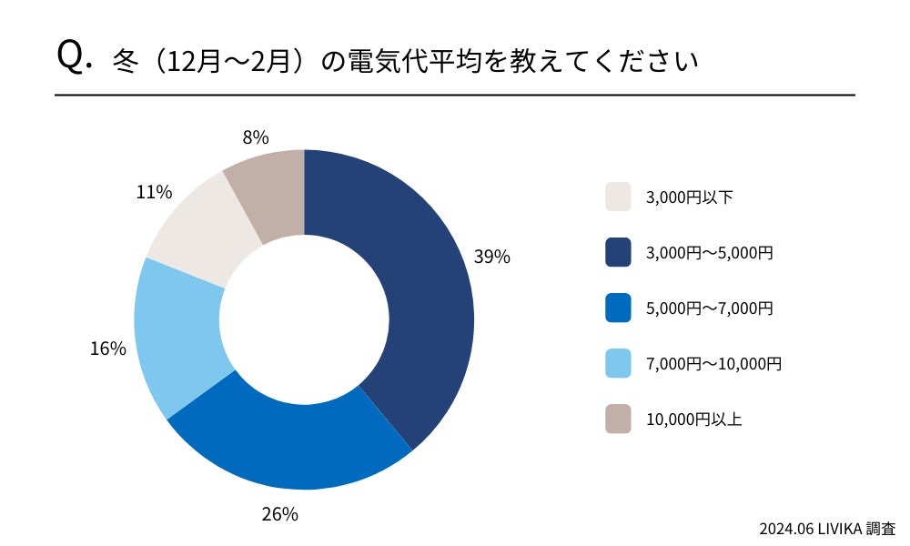 冬の電気代平均で一番多かったのは「3,000円~5,000円」で39%でした。