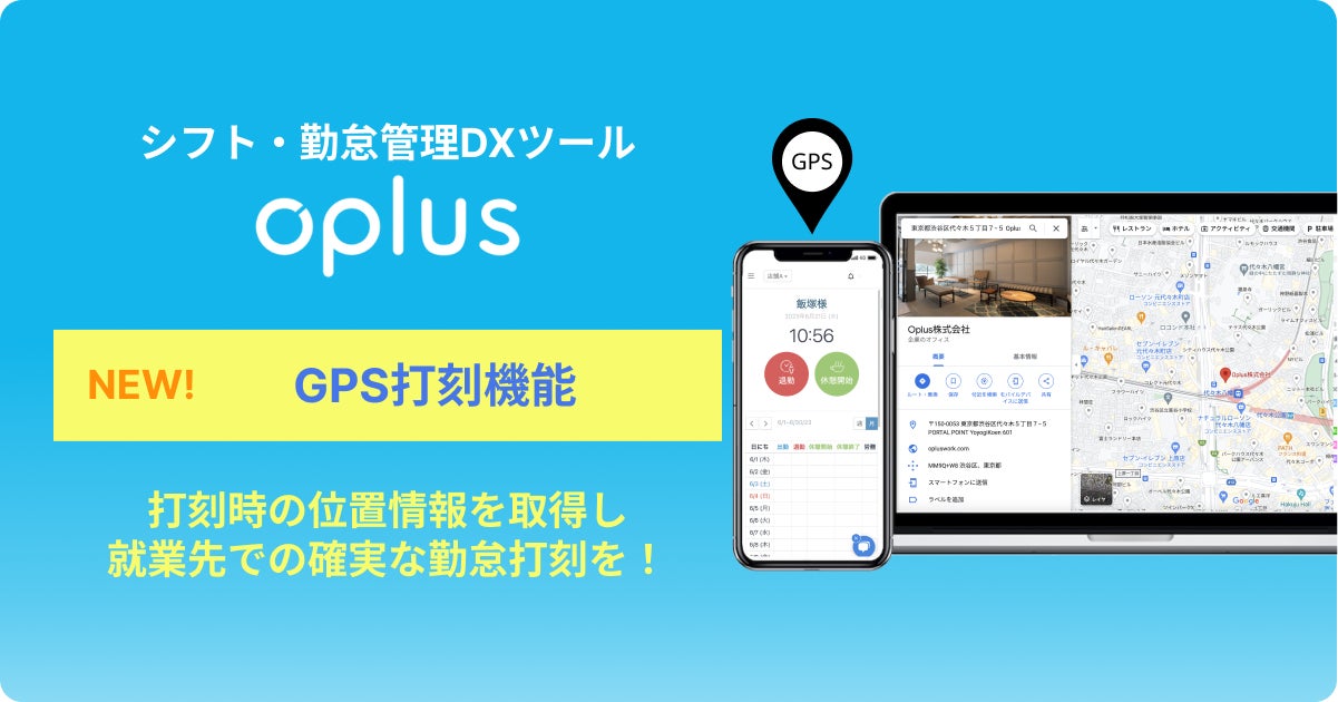 シフト・勤怠管理DXサービス「oplus」、GPS打刻機能をリリース。打刻時の位置情報を取得し、就業先での確実な勤怠打刻を実現!