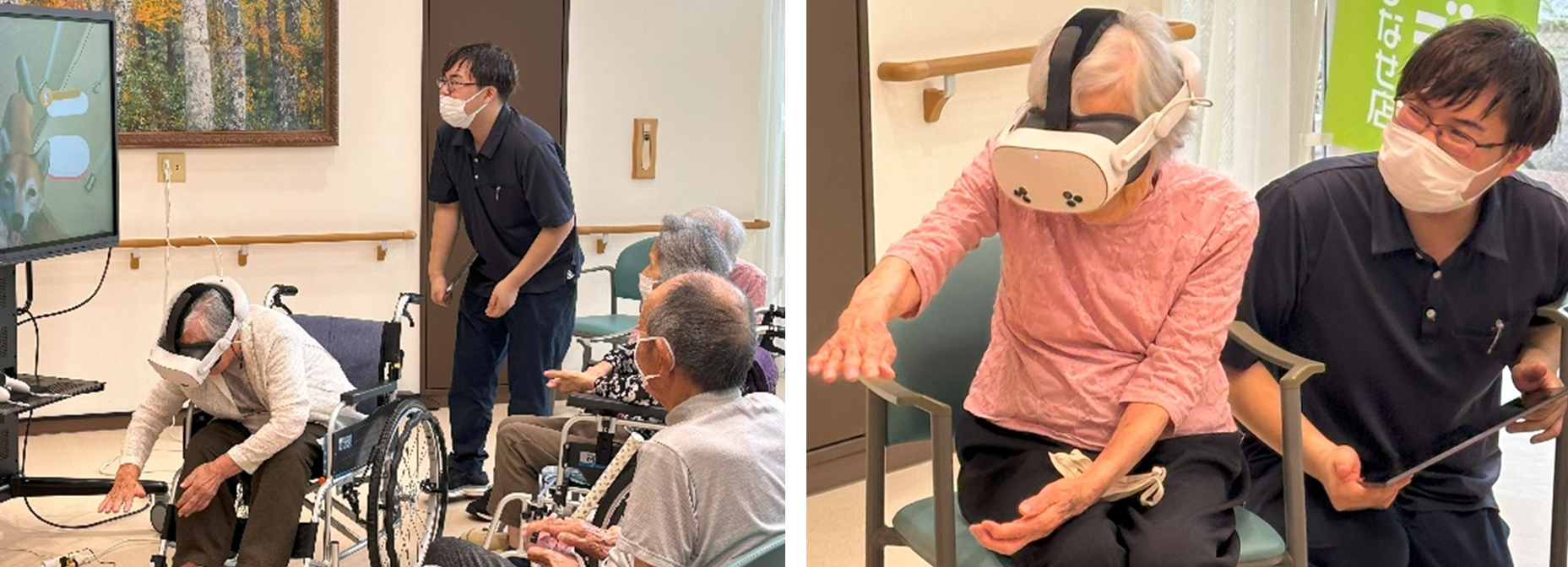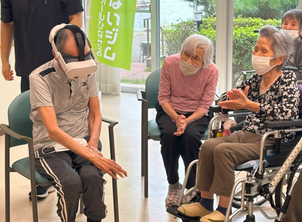 また、現場では利用者とスタッフが約3か月をかけてVRゴーグルに慣れるためのチャレンジを重ねるなかで、無理なく使いこなせるようになり、その結果として従来のゴルフや体操などのレクリエーションと比べて、進行にかかる人員が抑えられ、省人化につながるという副次的なメリットも生まれています。