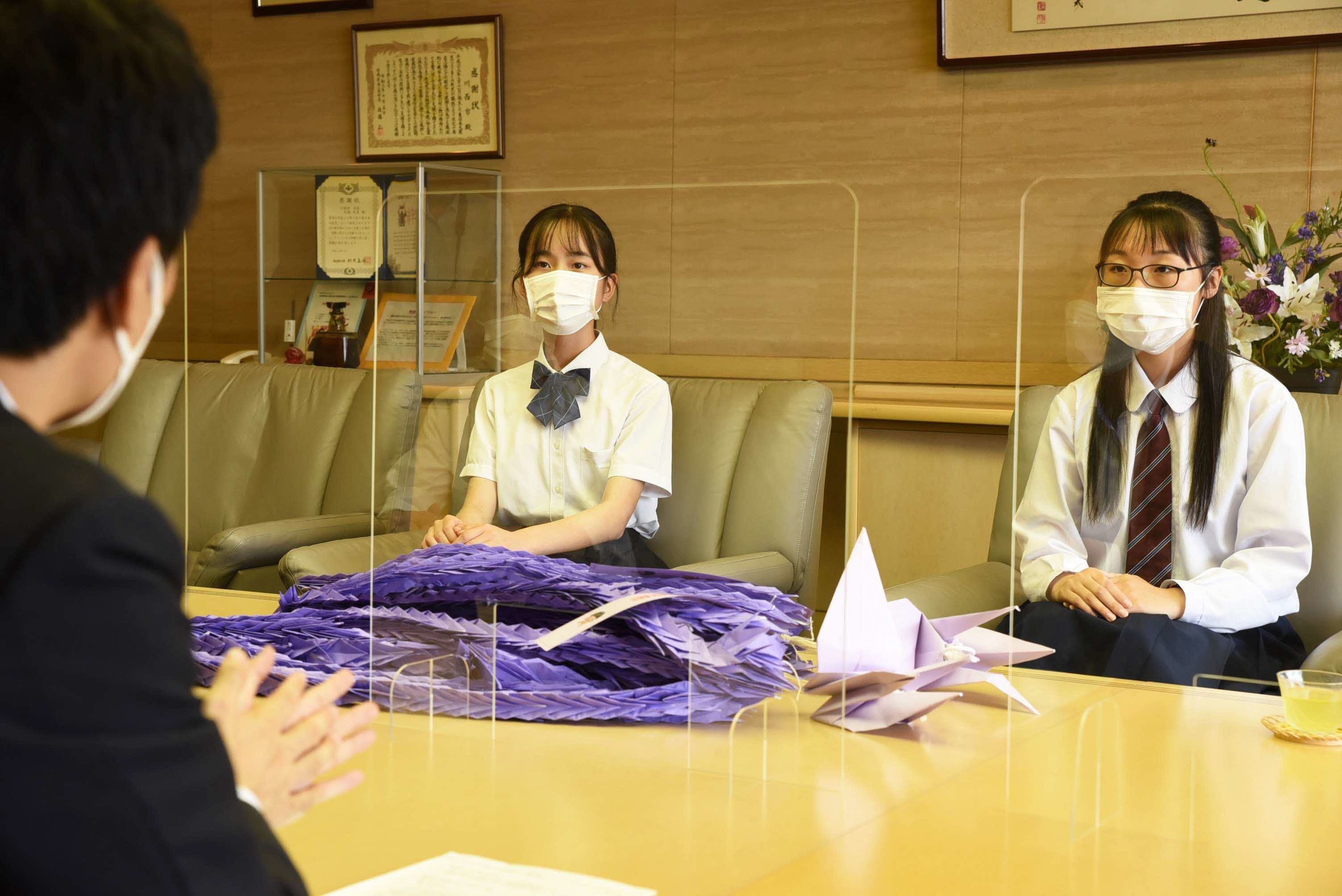 折り鶴を託された井上さんは「最近はコロナのニュースが多く、忘れがちになりますが、平和について改めて考え直し、それをみんなに広げていきたい」と話した。