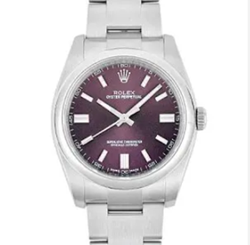 オイスターパーペチュアルはシンプルを極めたデザインで多くのファンを魅了しています。レッドグレープダイヤルが実にエレガントです。