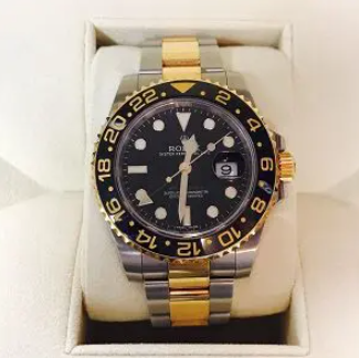 異なる場所の時刻を把握できる機能を備えたロレックス(ROLEX)唯一のパイロットウォッチです。ブラックとゴールドのカラーデザインに目を奪われます。