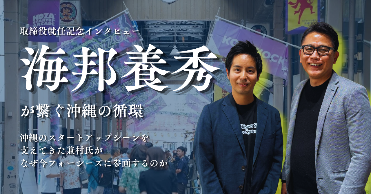詳しい就任までの背景は、インタビュー『「海邦養秀」が繋ぐ沖縄の循環 ー 沖縄のスタートアップシーンを支えてきた兼村氏が、なぜ今フォーシーズに参画するのか』をご覧ください。