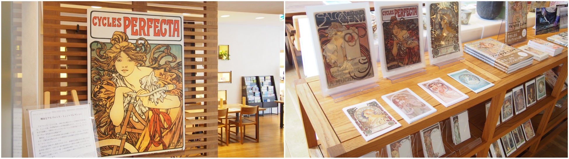自転車のあるライフスタイルを提案しているLIFE CREATION SPACE OVEにミュシャ作品(レプリカ)が登場します。期間中には、ミュシャの故郷チェコをイメージした料理や、チェコビールの提供に加え、コンサートや散走イベントも開催します。また、ミュシャグッズの販売も行います。