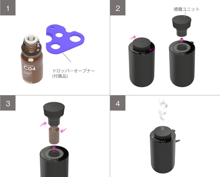 エッセンシャルオイルを取り付けるだけの簡単操作