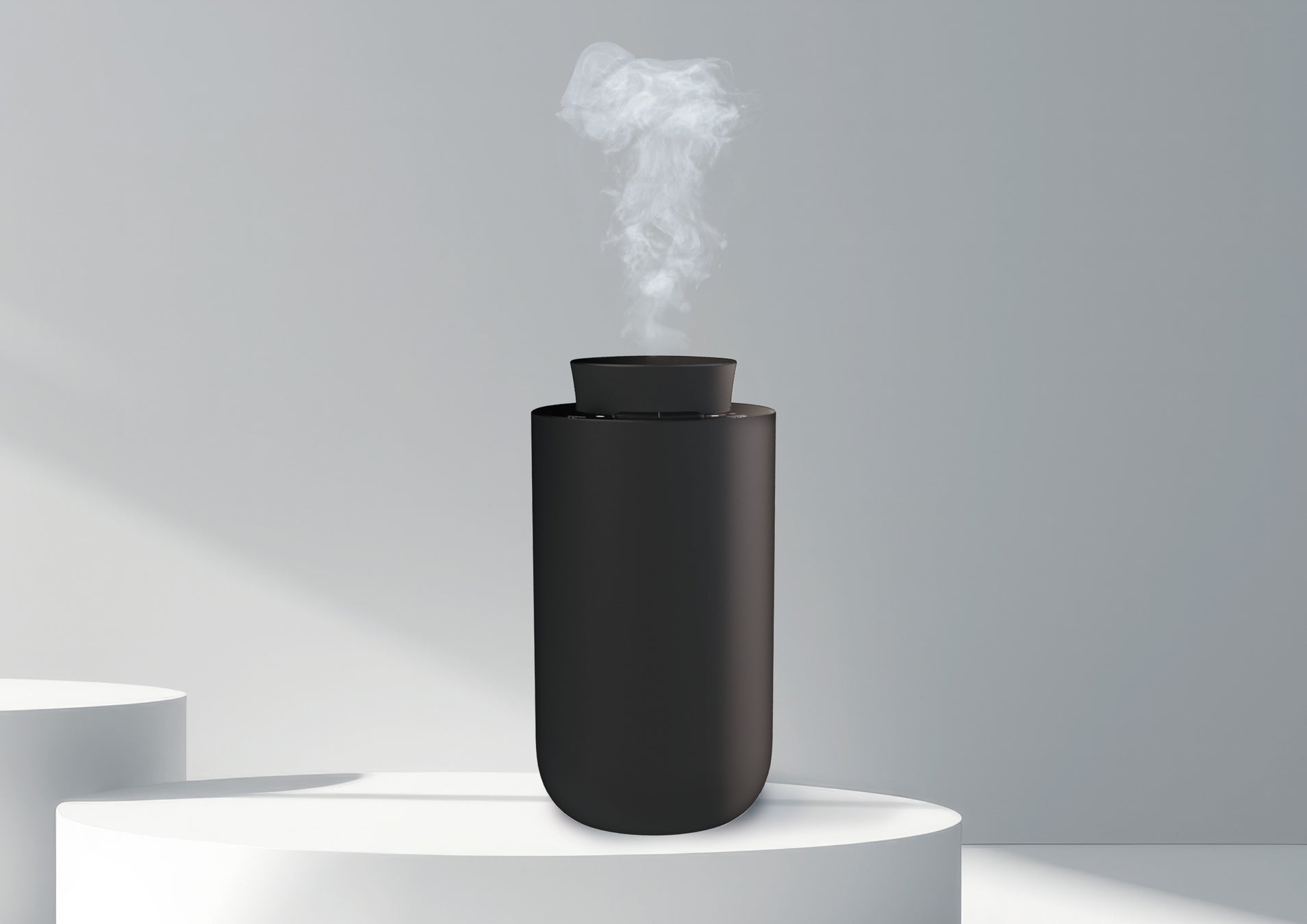 エッセンシャルオイルを薄めずミスト化するネブライザー式の電動式噴霧で、空間の香りの強さも3段階の噴霧レベルで調整可能。