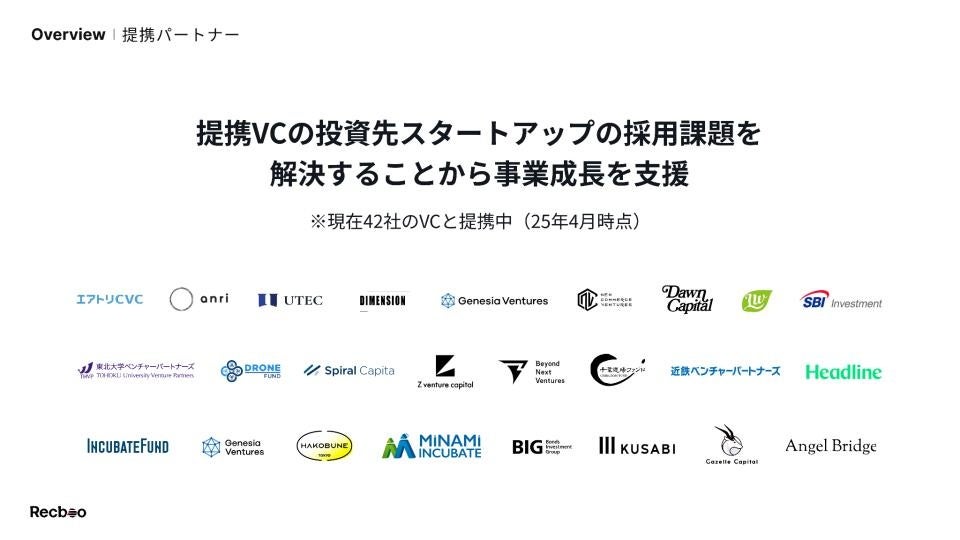 ・2025年5月現在で提携VCが45社以上。スタートアップの採用実績多数。