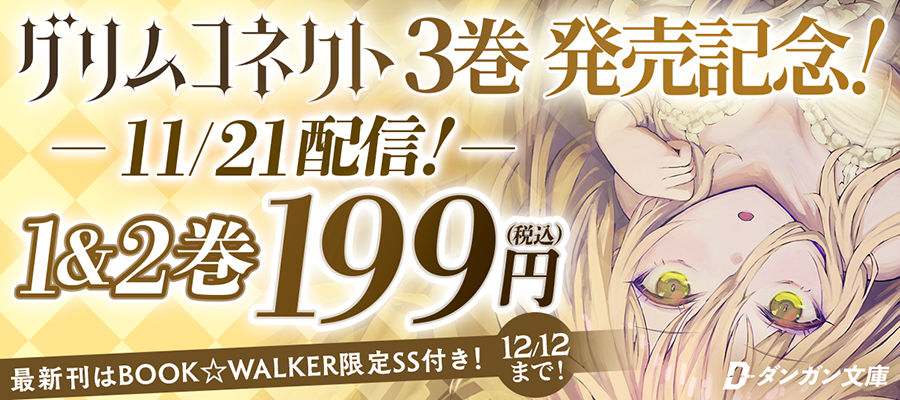 また、14日より予約が開始となっており、11月14日から12月12日までBOOK☆WALKERにて第1巻&第2巻の199円セールを実施。また、BOOK☆WALKERにて第3巻を購入の方には限定SSが巻末に収録されています。
