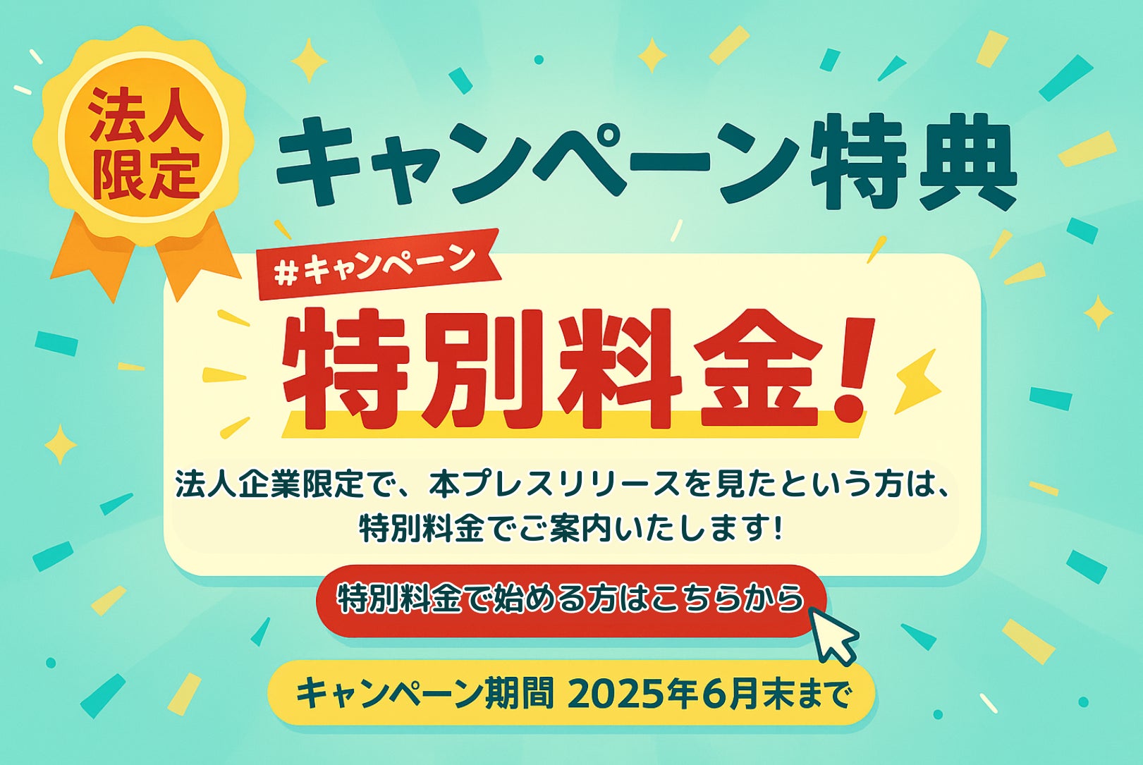 法人企業限定で、本プレスリリースを見たという方は、特別料金でご案内いたします。