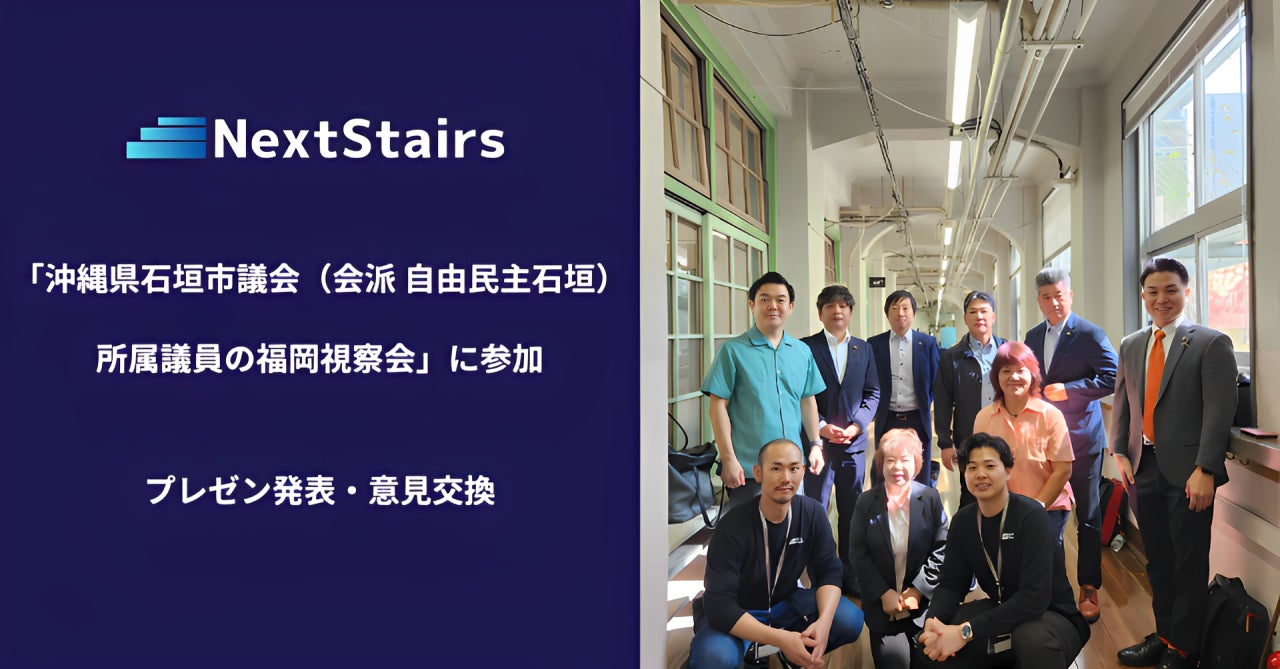 株式会社NextStairs(ネクストステアーズ 本社:福岡県福岡市中央区、代表取締役 CEO:万井拓馬/マンイタクマ)は2025年3月26日に、沖縄県石垣市議会(会派 自由民主石垣)所属議員の「福岡視察会」にてプレゼン発表・意見交換を致しました。