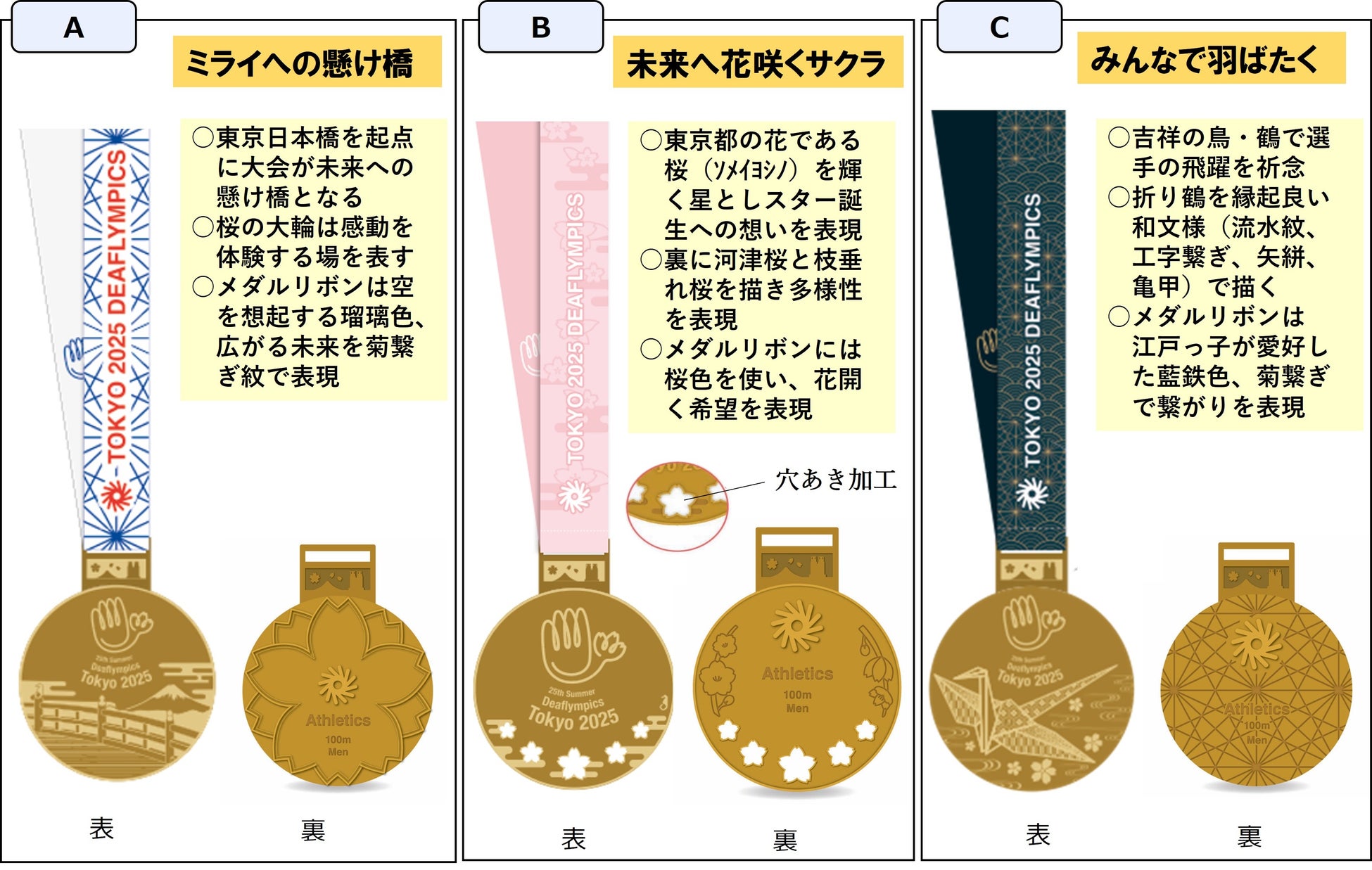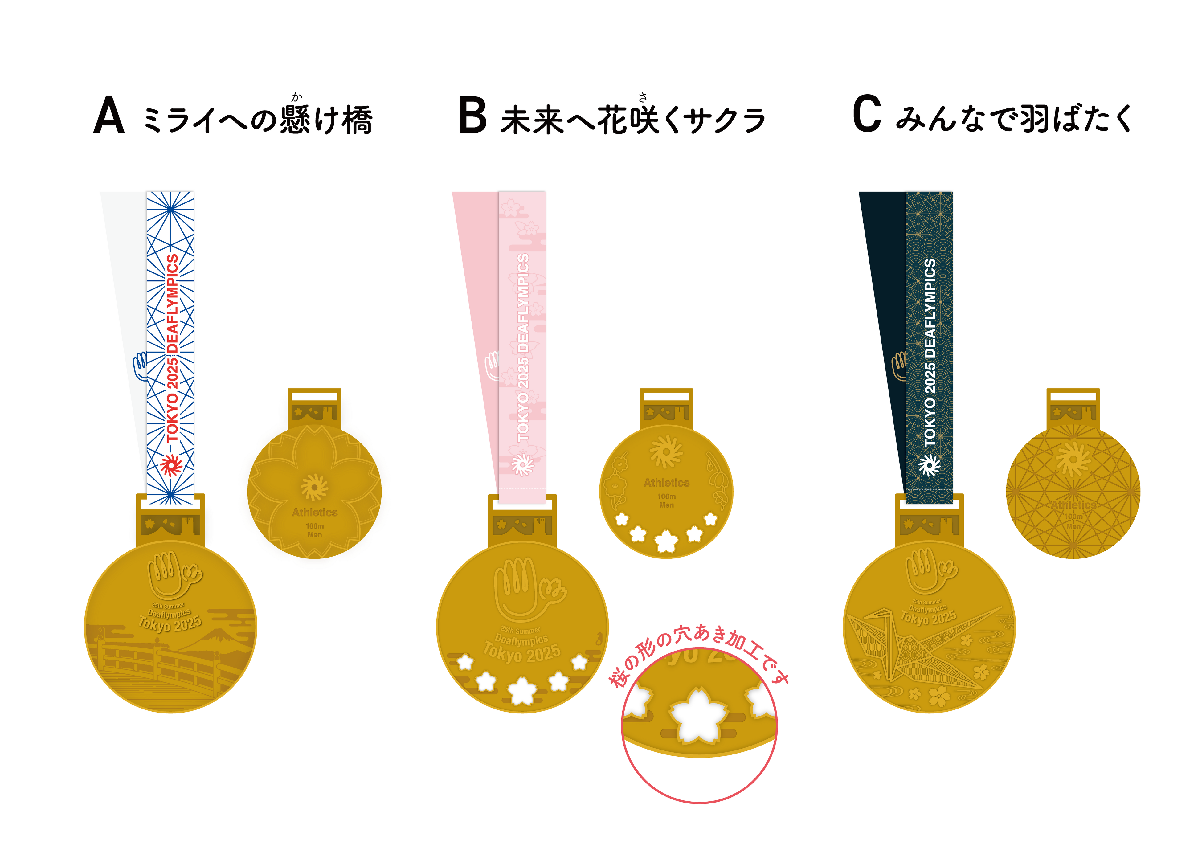 東京2025デフリンピック アスリートの勝利の証である入賞メダルを、デザイン候補3案の中から小中高生による投票で決定します。オンライン投票を9月1日(日)から開始します。