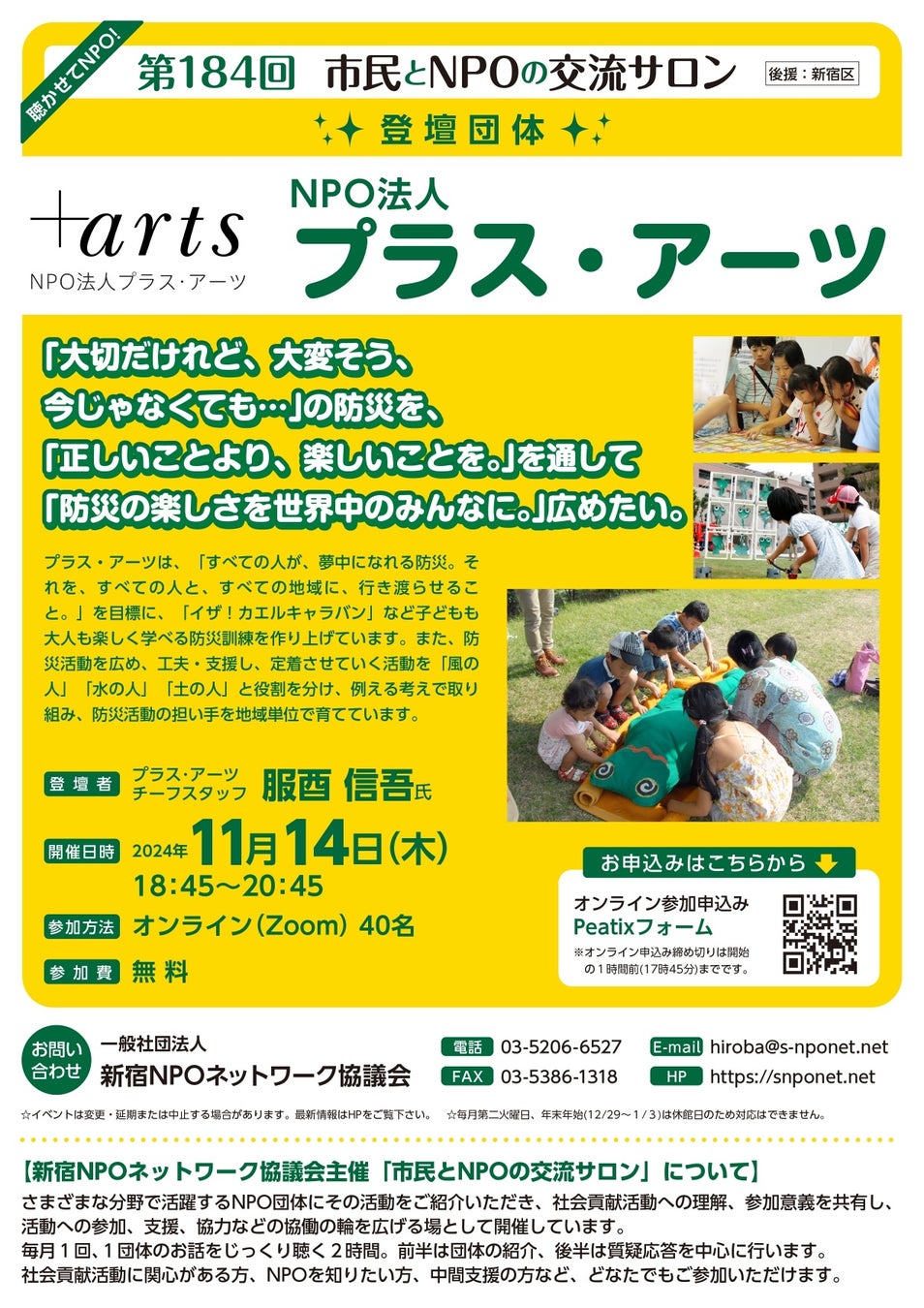 【第184回市民とNPOの交流サロン(登壇団体:NPO法人プラス・アーツ)】