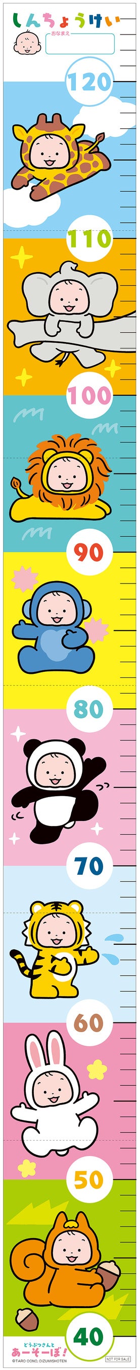 絵本に登場するどうぶつさんの着ぐるみ姿のかわいいあかちゃんイラストがたまらなく愛おしい身長計です。記念写真を撮る際にもご活用ください。