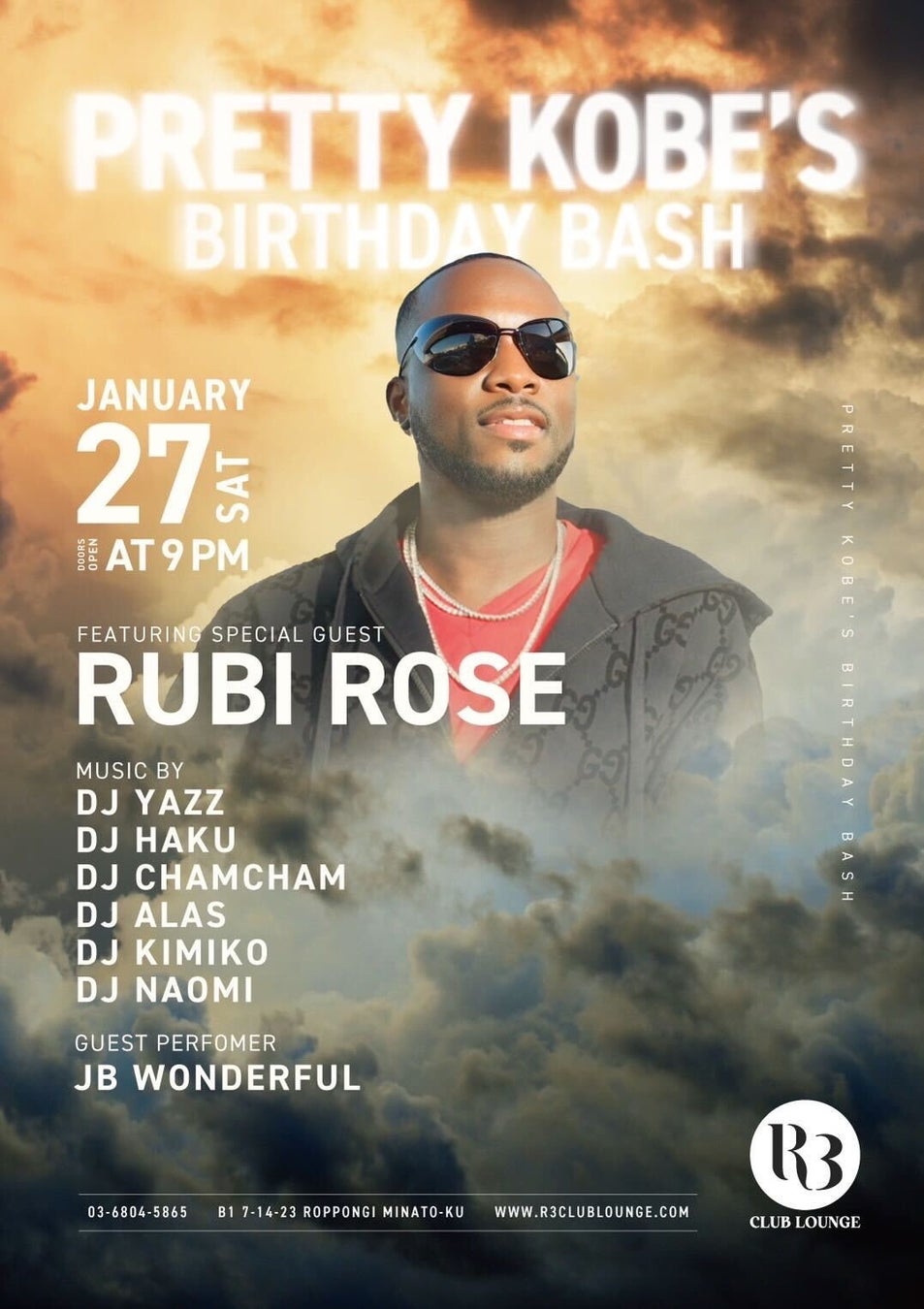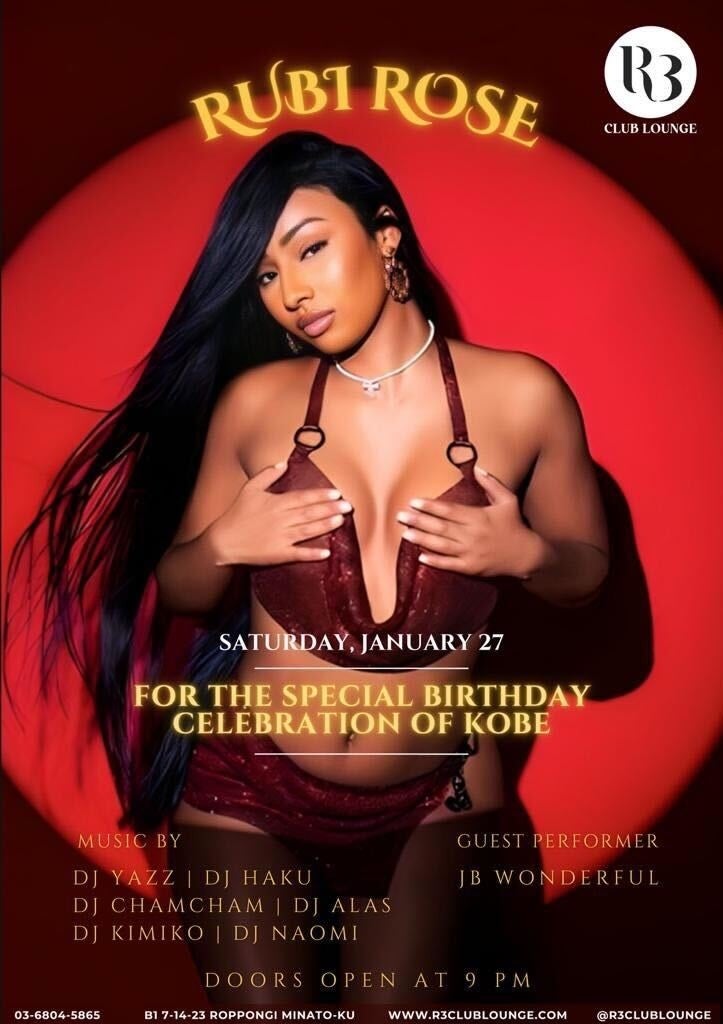 1/27(土)R3ClubLounge(六本木)、人気ラッパーRubiRose来店予定!